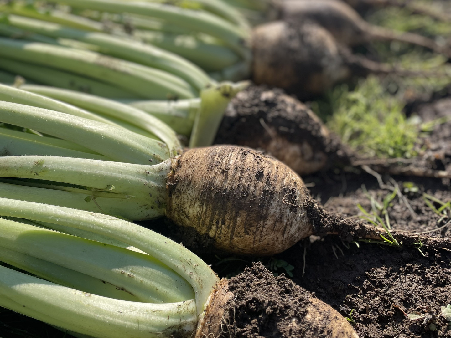 青首大根と違い、表面は凸凹しており、カブのような形が特徴の大根です。