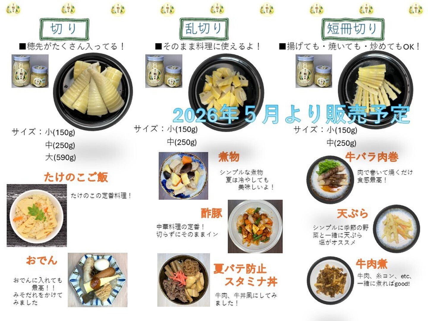 商品について あわせ買い対象 同生産者の別の「あわせ買い対象」商品と一緒にご注文いただくと、送料をまとめてお届けできる場合があります。 内容 山形県産タケノコの水煮 重量・容量 約270g 発送 ヤマト運輸 送料 ¥ 常温便 + ¥ 0 複数注文すると送料がまとまります。 種別 野菜 たけのこ 孟宗竹 産地 山形県 自然栽培 野菜 孟宗竹 山形県x野菜 山形県xたけのこ 山形県x孟宗竹 商品説明 味 触感最高!掘りたてのタケノコそのままの風味栽培・生産のこだわり 国産(山形県白鷹町)の掘りたてのタケノコを直ぐに水煮にしました産地の特徴 品種の特徴 色々な料理に直ぐ使えるよう、3種類の切り方をご用意しました もっと見る この商品のことをお友達にもシェアしませんか ポスト シェア