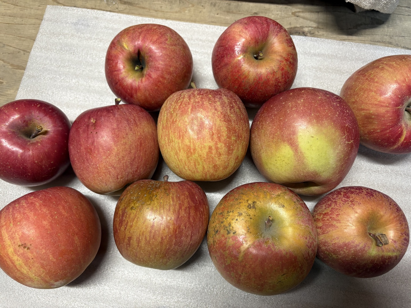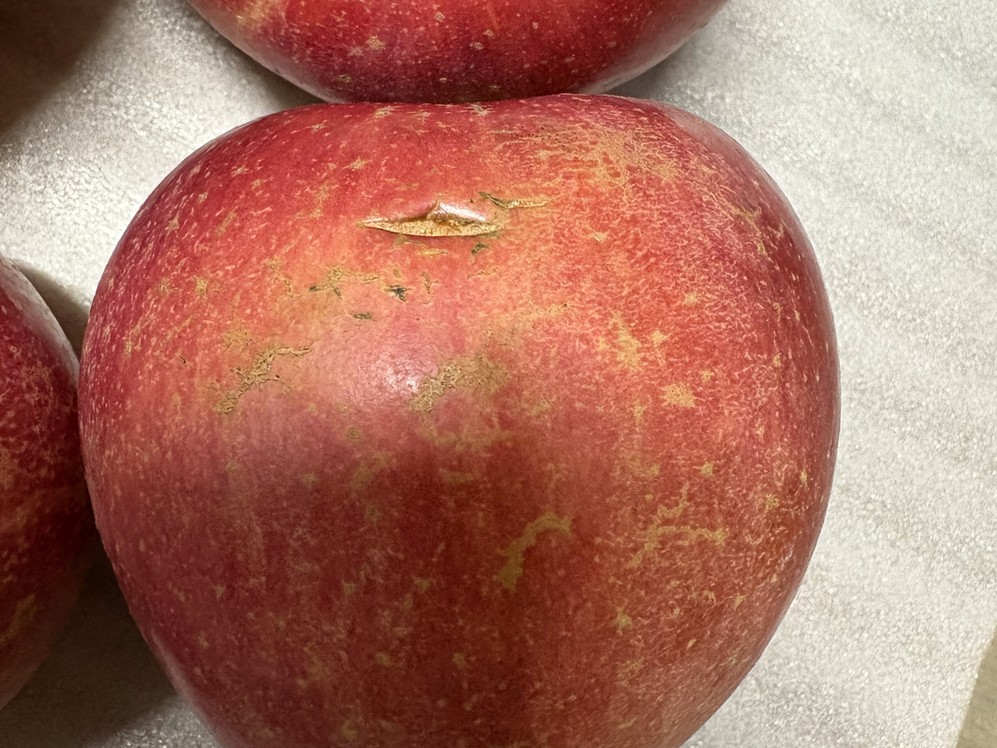 選果の際に様々な理由からギフト用商品に入れることができなかったりんごになります。サビ(果皮表面のざらつき)、変形果、色のムラ、軽度な日焼け(果肉が軟化していないもの)、軽度な虫害(カイガラムシやカメムシなど)、ツル割れ、小傷、微小な鳥の足傷、枝ズレ跡などがありますが、食味はギフト用と全く変わりありません。傷によっては皮を剥くと若干変色している可能性がありますが、それ以外の箇所は問題なく召し上がれます。