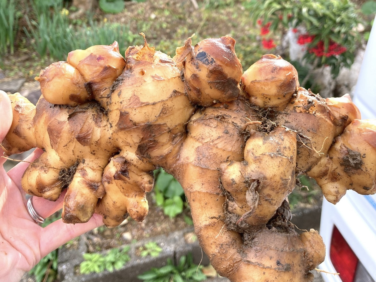 写真3枚目にあるように年間を通して生姜の保管に適している温度と湿度に保って熟成させている[囲い生姜]です。