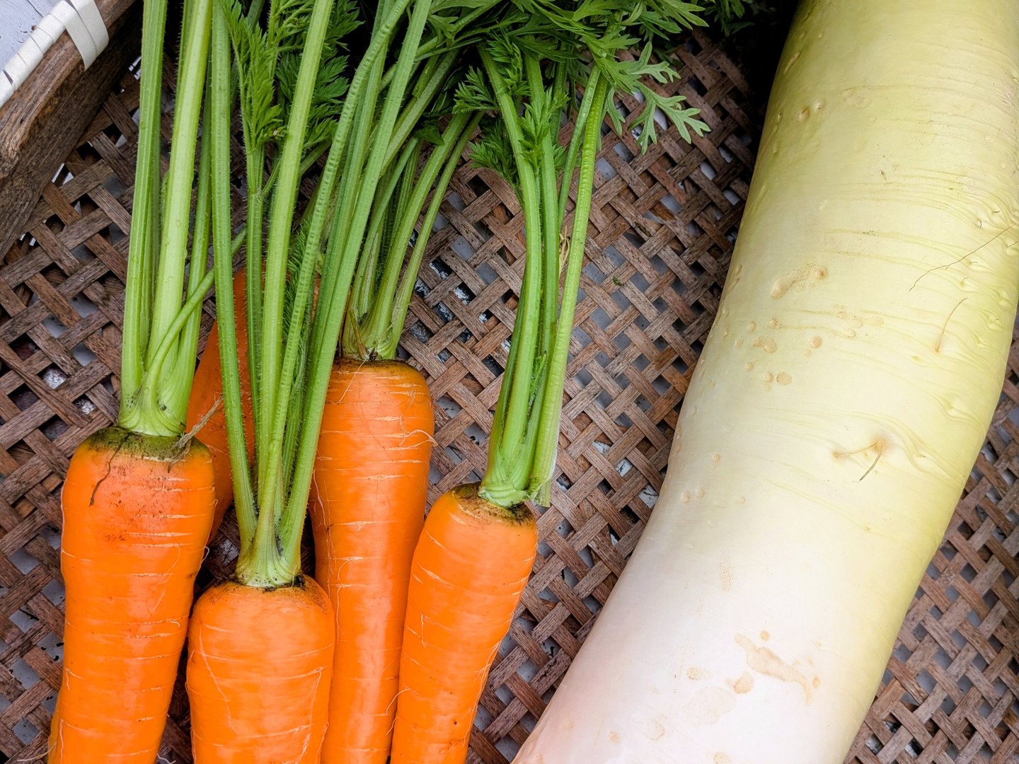 ◎葉付き人参は、葉も召し上がれますが届いたらなるべく早く葉を切り落として保存して下さい。