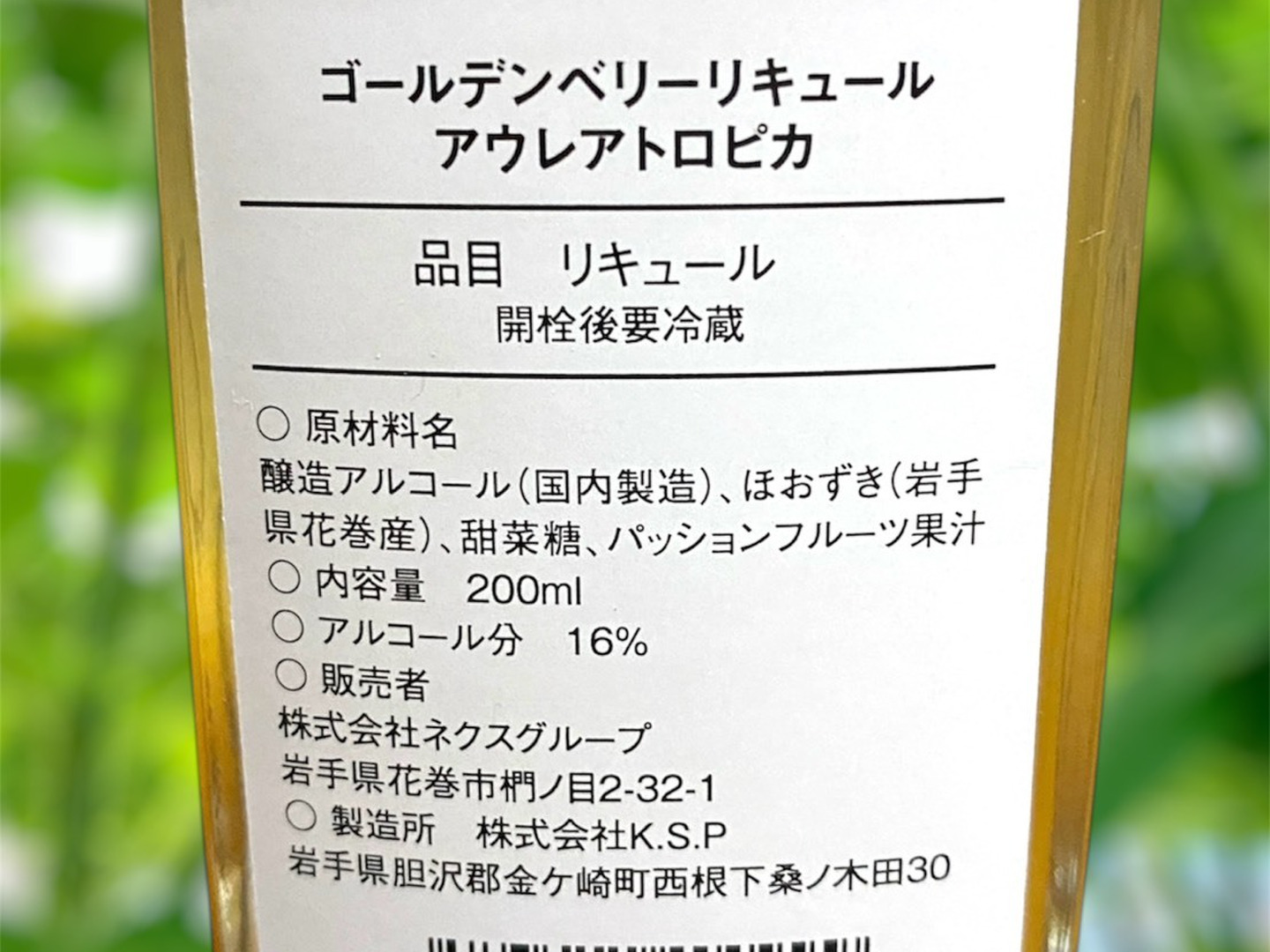 ○商品名:ゴールデンベリーリキュール Aurea Tropica ※