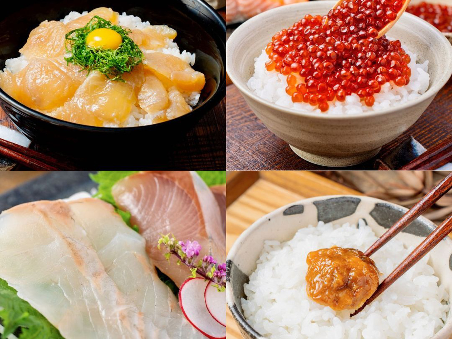 魚介醤油漬け2パック、、切れてる刺身2パック、ウニ一夜漬け60g、イクラ醤油漬け1パック