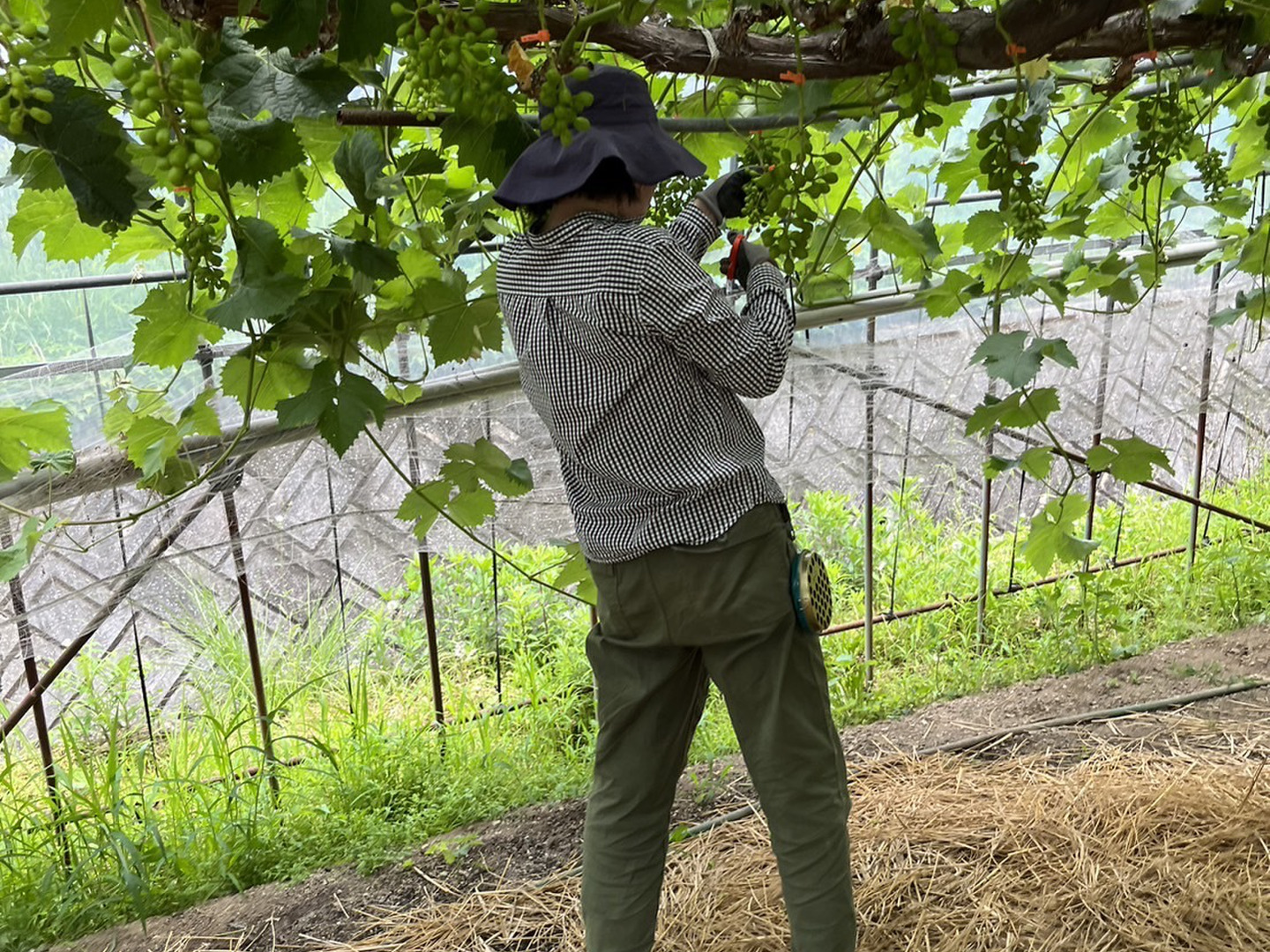 ぶどうはハウス栽培しており、防虫ネットをかけ、必要最低限の農薬使用を心がけております。
