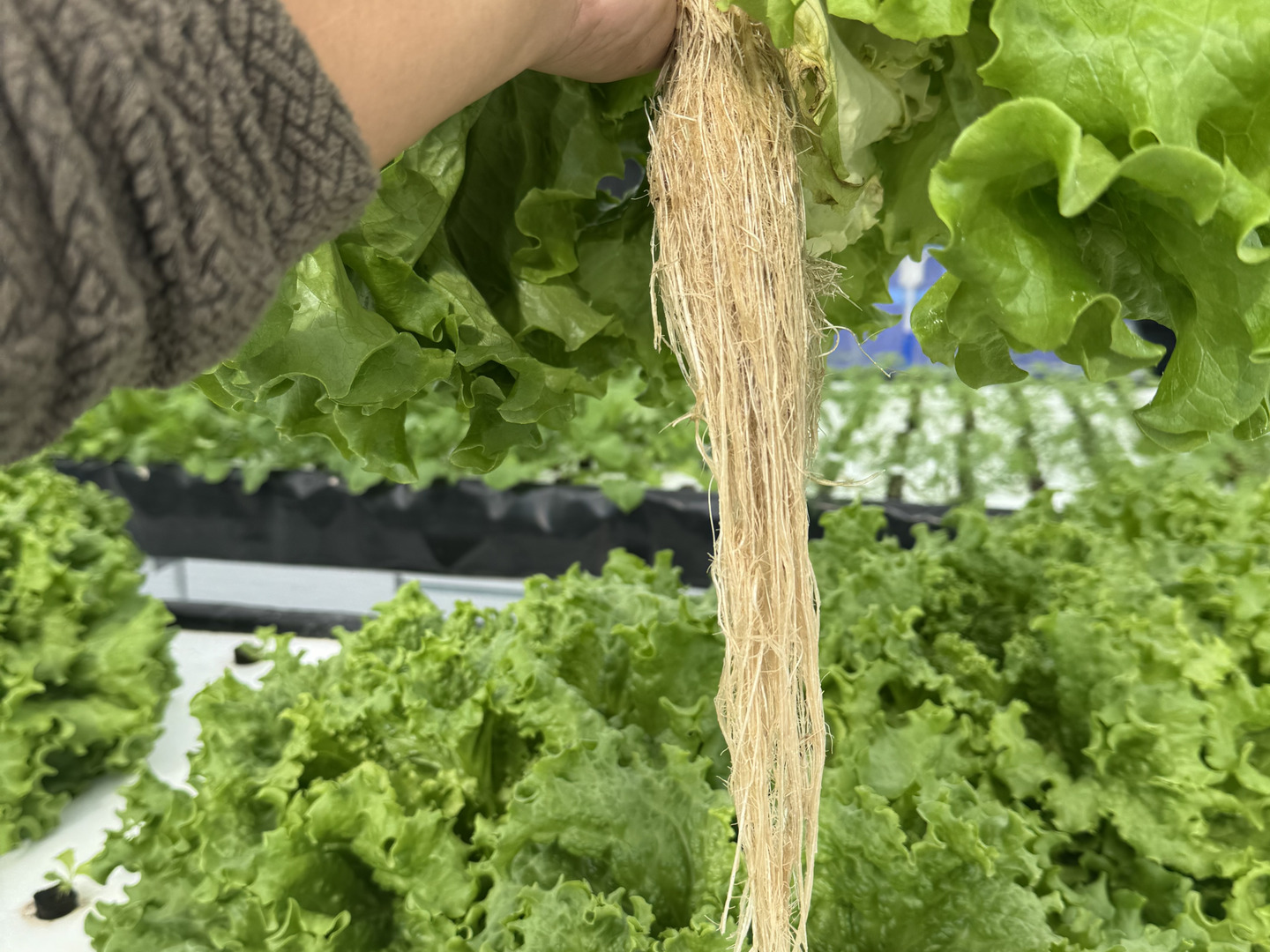 - 新鮮なアクアポニックス産リーフレタスとサニーレタス