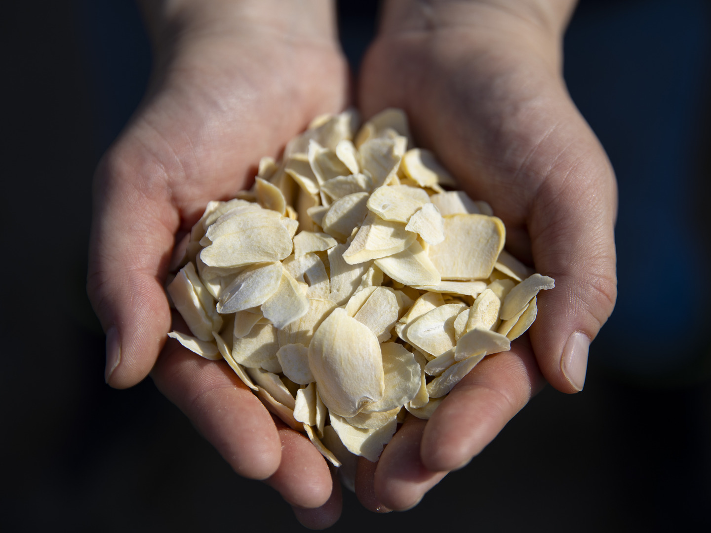 当牧場では、エサににんにくを混ぜて与えています。にんにくは胃腸の調子を整え全身の免疫力を高めてくれるため、牛たちは風邪や下痢になることも少なく健康に育っています。