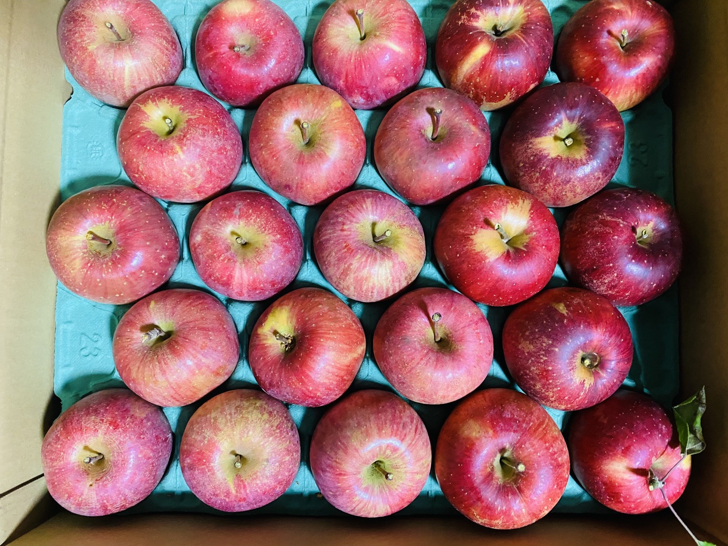 私たちのりんごは反射シートなどによる着色の促進は行わず、見かけの着色よりも果実本来の味が乗った完熟品を収穫しています。