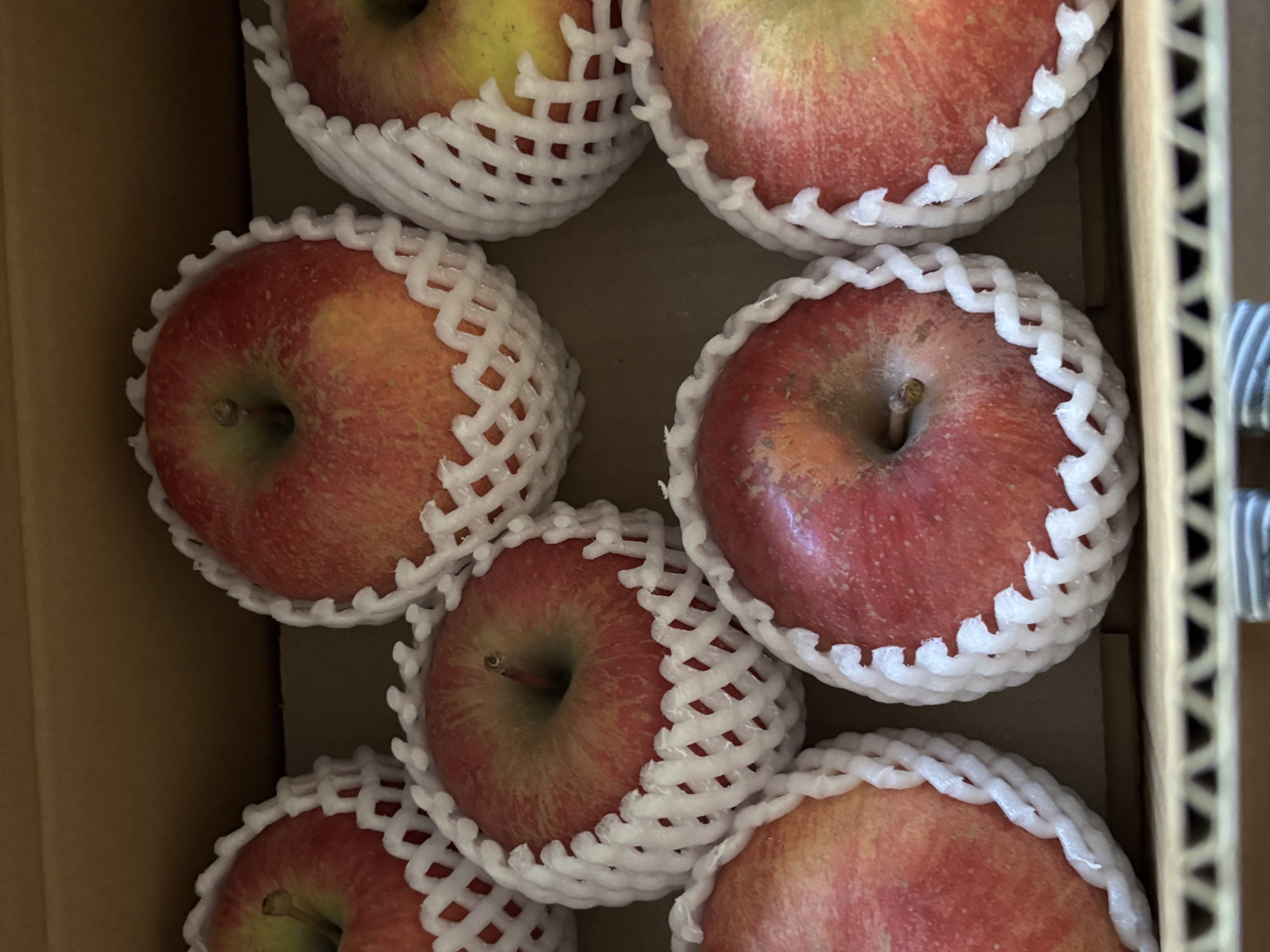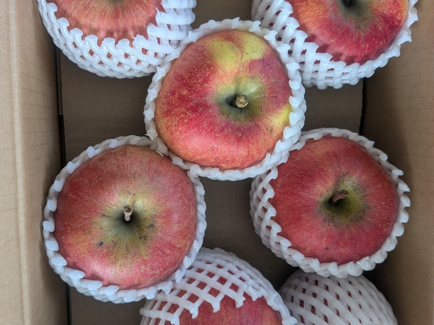 親がふじ×世界一なので、ふじをやや甘めにした感じです。世界一のような大きな個体もあります。