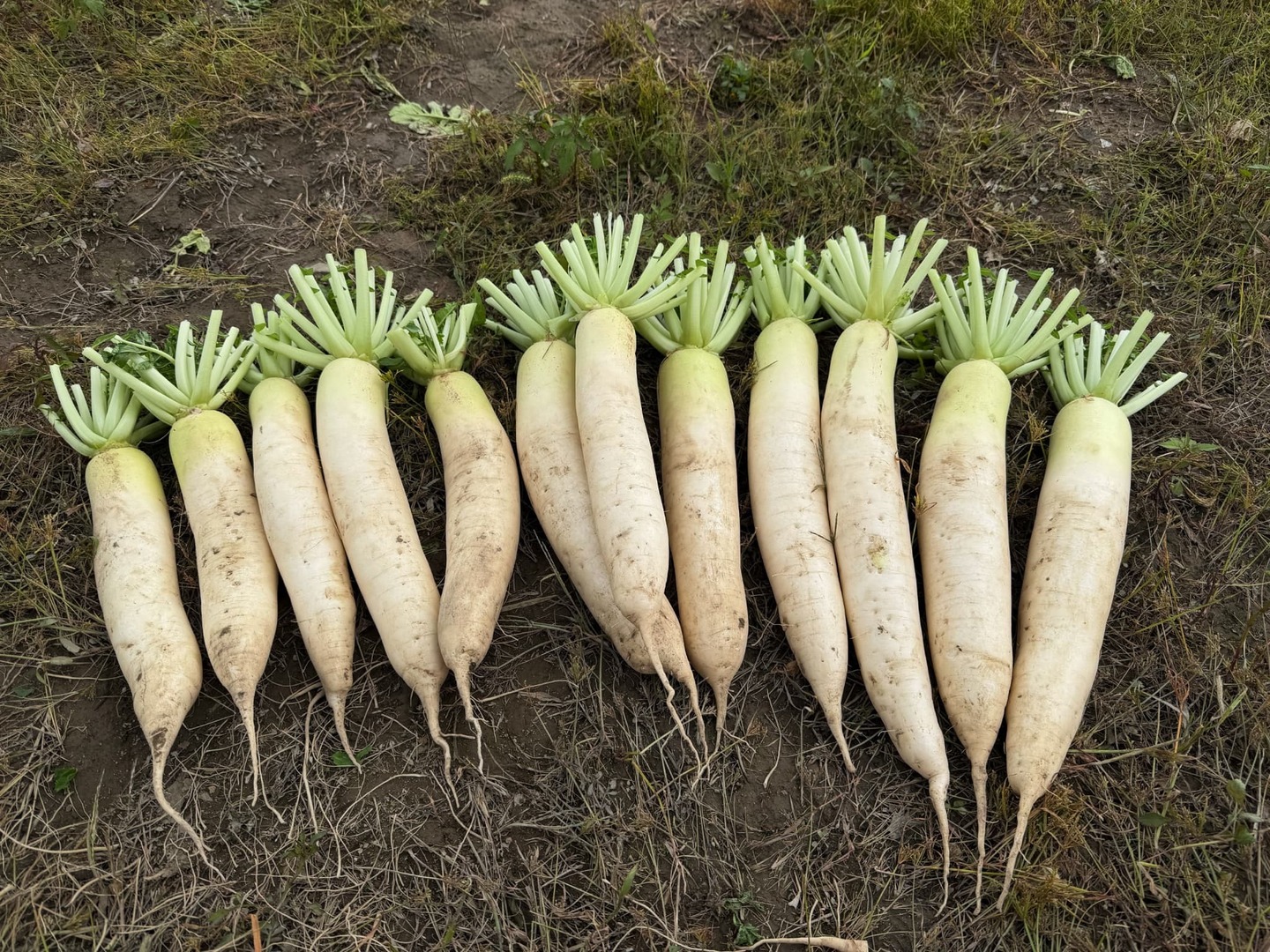 大根、カブ、小松菜、水菜、サツマイモ、里芋、生姜の5〜7品が基本となりますが、野菜の生育状況によっては他の品目に変更することがございます。