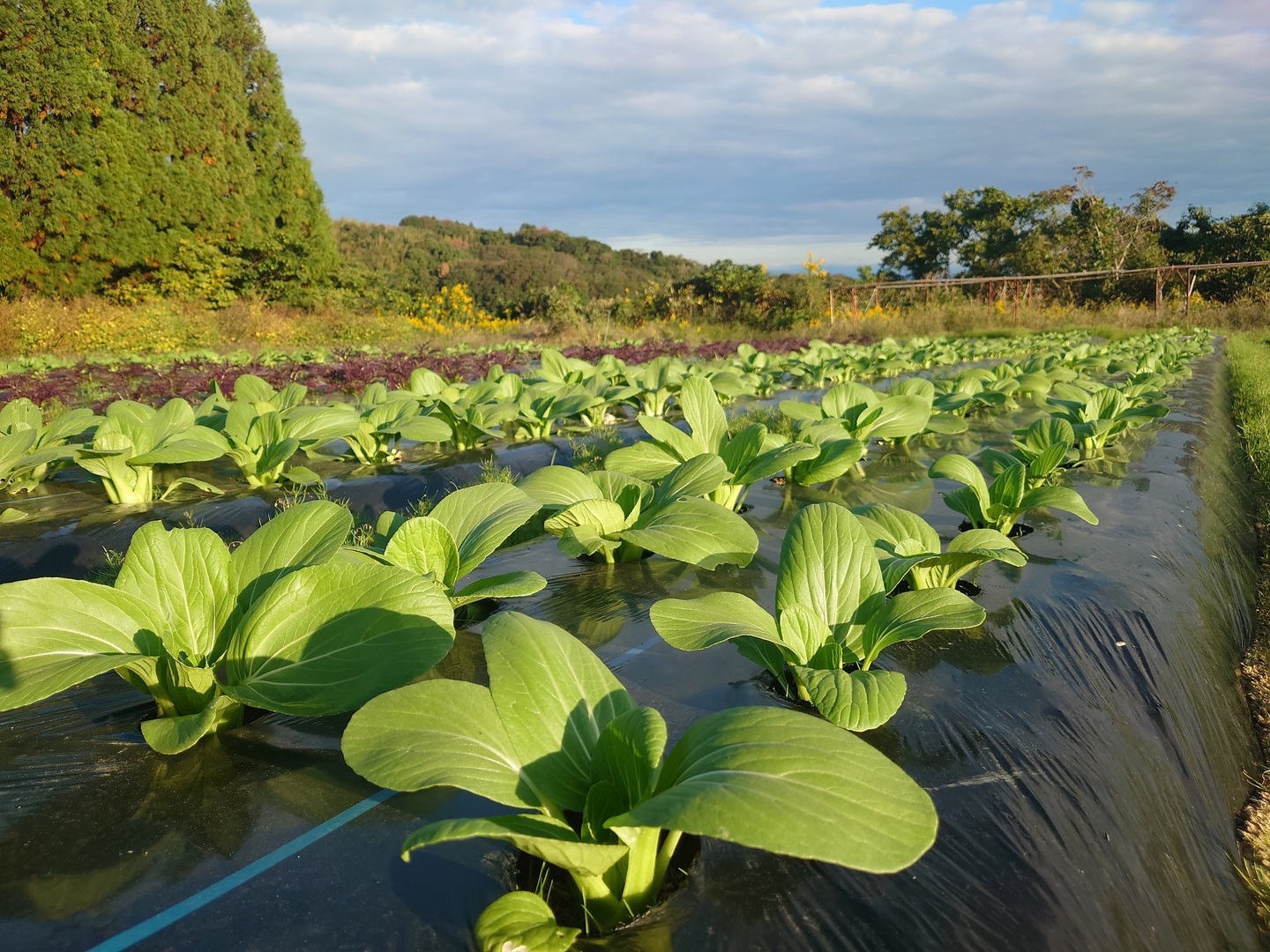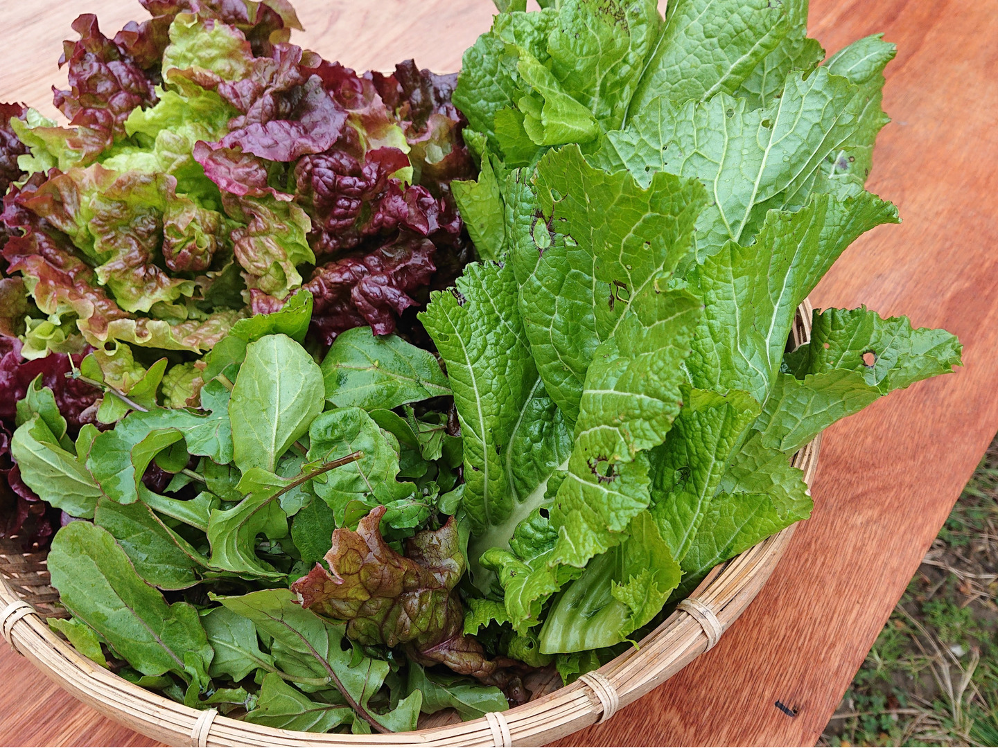 さつまいも(紅はるか、シルクスイート・ネッチョリ系です)からし菜(サラダで食べれる旨味の凝縮をお楽しみください)かぶ(葉っぱまで食べれます。甘味が奥深いです)チンゲン菜(炒めるだけで感動)九条ネギ(絶品!)大根(葉っぱ付きです)にんじん(この甘みが最高、葉っぱも美味)