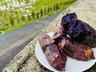 米糠をベースに、魚系肥料、アミノ酸肥料、海藻の粉末などミネラル豊富な肥料で育てることで、作物の免疫力を高めています。また、栽培期間中は農薬・化学肥料を一切使用しておらず、地域特有のミネラル豊富な粘土質の土壌がサツマイモに適度なストレスを与えており、甘み・コクが濃縮されています。紫芋は、ビタミンCや食物繊維だけでなく、ポリフェノールの一種アントシアニンを豊富に含むんでいます。このふくむらさきは「紅はるか」を量がする甘さ、しっとりとした食感です!