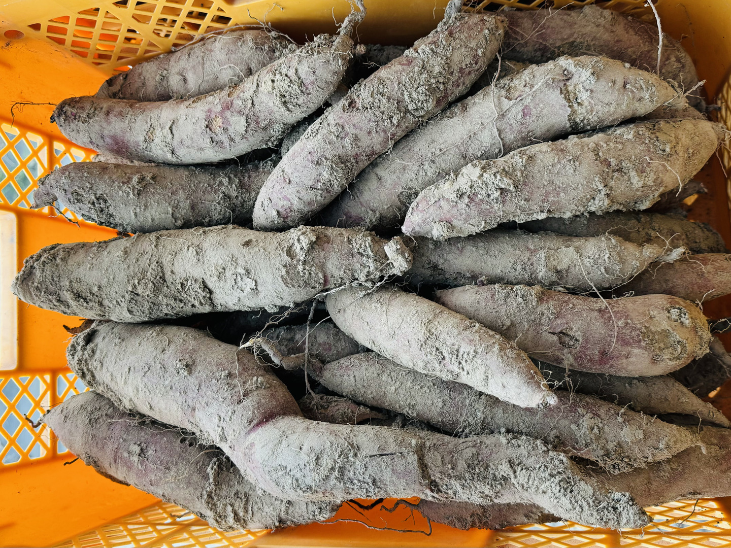収穫は1つひとつを丁寧に手掘りで,収穫したものを。品質維持のために洗わず土付きのままお届けします。