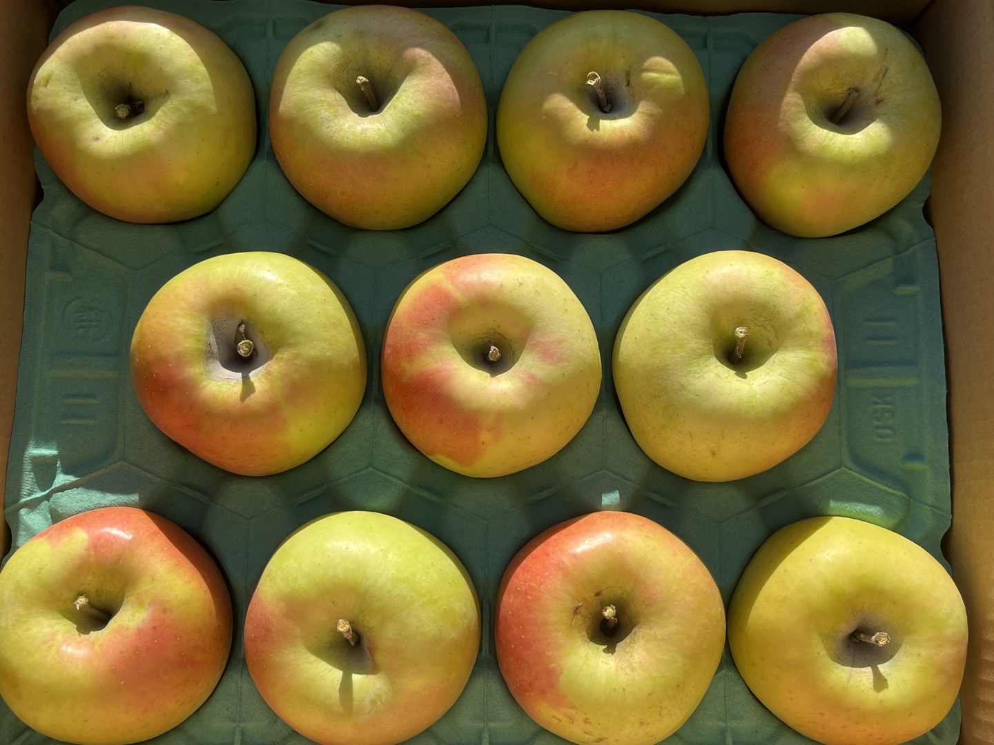 そのため、りんごに葉かげなどの色むらあることがございますので、ご理解くださいますようお願いします。