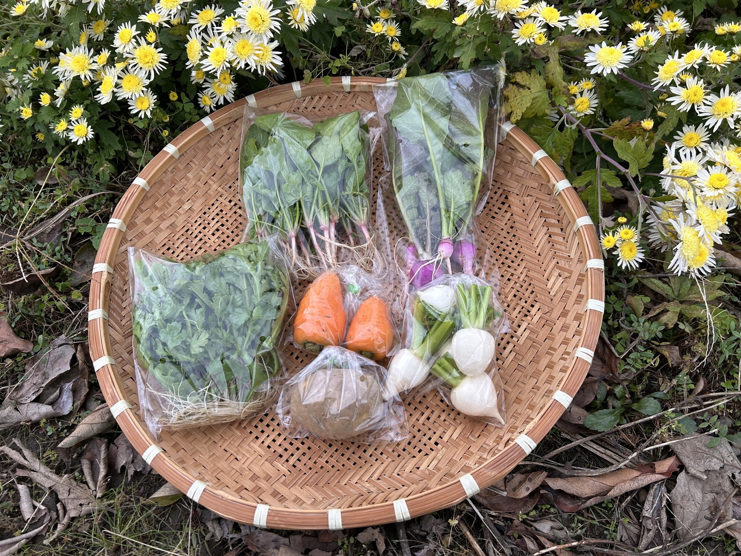 商品について あわせ買い対象 同生産者の別の「あわせ買い対象」商品と一緒にご注文いただくと、送料をまとめてお届けできる場合があります。 生産者からのお知らせ 年末年始休暇のお知らせ下記の期間は、年末年始休業とさせていただきます。[期間]2025/12/30 ~ 2026/01/04商品発送は1/05より順次対応させていただきます。 もっと見る 内容 6~8品目 1~2人分 重量・容量 約1kg 発送 ヤマト運輸(食べチョク特別送料) 送料 ¥ 常温便 + ¥ 0 数量1点ごとに送料が発生します。 種別 野菜セット 産地 福島県 自然栽培 野菜セット 贈答品 家庭用 動物性堆肥不使用 福島県x野菜セット 商品説明 今が旬のお野菜を詰め合わせました!当農園では固定種・在来種・伝統野菜を農薬・化学性肥料・動物性肥料・ビニールマルチを使用しない自然農法で栽培しています。そのためお野菜の味は雑味がなく、透明感があります。出汁がいらないくらい味がしっかりしており、生食や焼くだけ、茹でるだけでも満足できる味わいです。季節のお野菜6種類のセットをお届けいたします。現在の栽培品目は・赤筋大根 (会津伝統野菜)・福光赤筋ニンニク(会津伝統野菜)・荒久田茎立菜(会津伝統野菜)・奥州玉ねぎ・大蔵大根・木曽紫かぶ・慶徳玉ねぎ(会津伝統野菜)・新源吾太葱(会津伝統野菜)・鮮紅三寸人参・時無し五寸人参・ちりめん茎立菜(会津伝統野菜)・デジマ (じゃが芋)・ジャンボニンニク・中葉春菊・ドシコ (ブロッコリー)・日本ホウレンソウ・富士早生キャベツ・みやま小かぶになります。収穫可能な品目を都度収穫及び発送していきます。自然農法による、農薬・化学性肥料・動物性肥料・ビニールマルチを不使用ですので皮まで安心して召し上がっていただけます。旬のエネルギー満点のお野菜、是非ご賞味ください。 もっと見る この商品のことをお友達にもシェアしませんか ポスト シェア