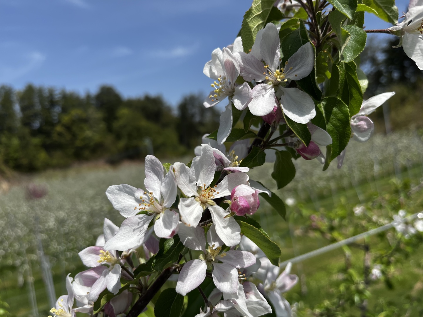 当園のある長野県 飯田市 龍江地域は、りんご栽培の南端とも言われ、花が咲くのがいちばん早く収穫は全国同じ時期なので、日本で1番長く木になっているりんごが、私達地域のふじです❀.(*´▽`*)❀.