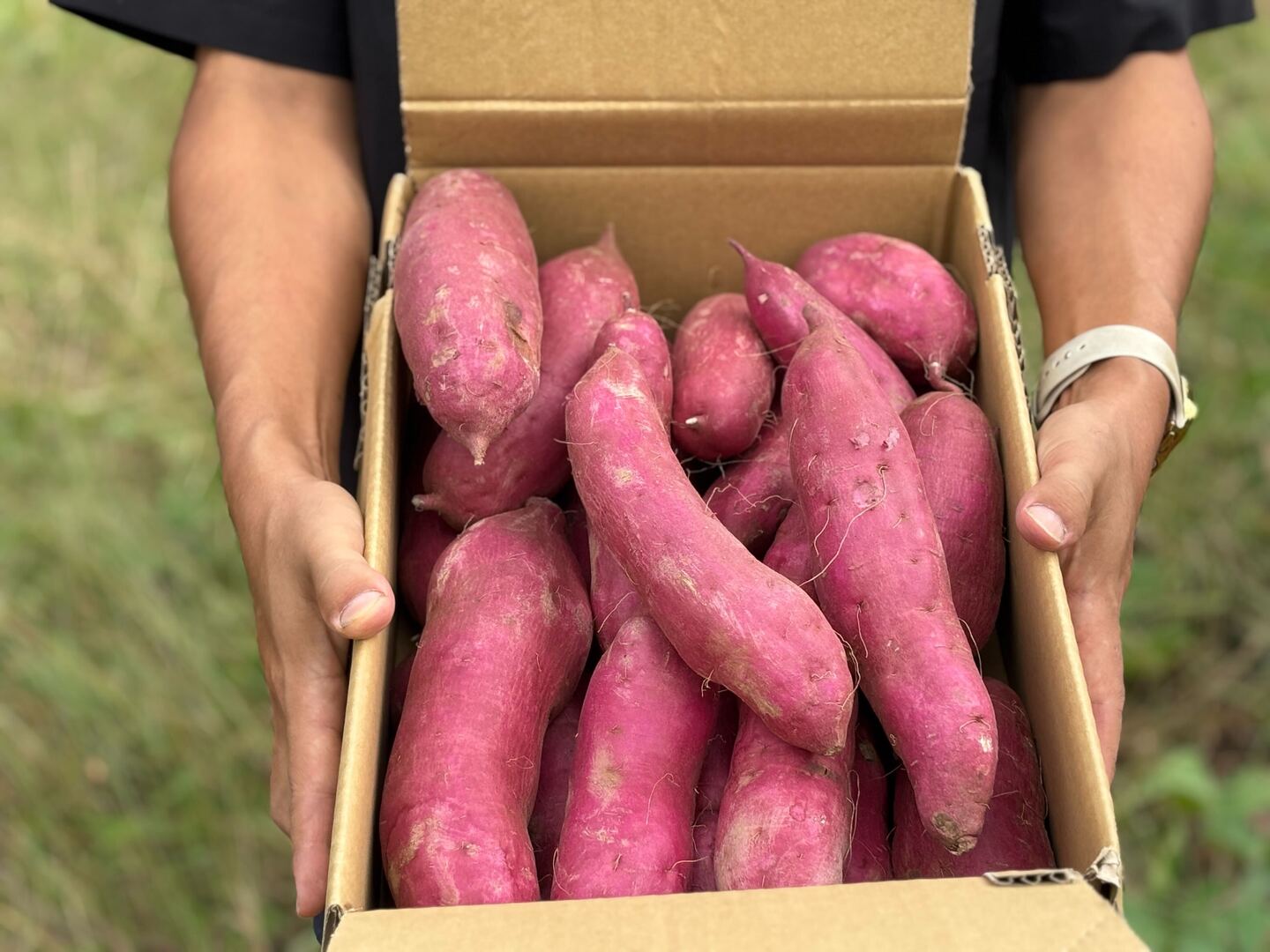 肥料、苗、土づくりにこだわってつくりました。農薬を当社比約2〜3割減のため、穴あき、虫食い、曲がり、ねじれた芋が入る場合があります。あらかじめご了承ください。
