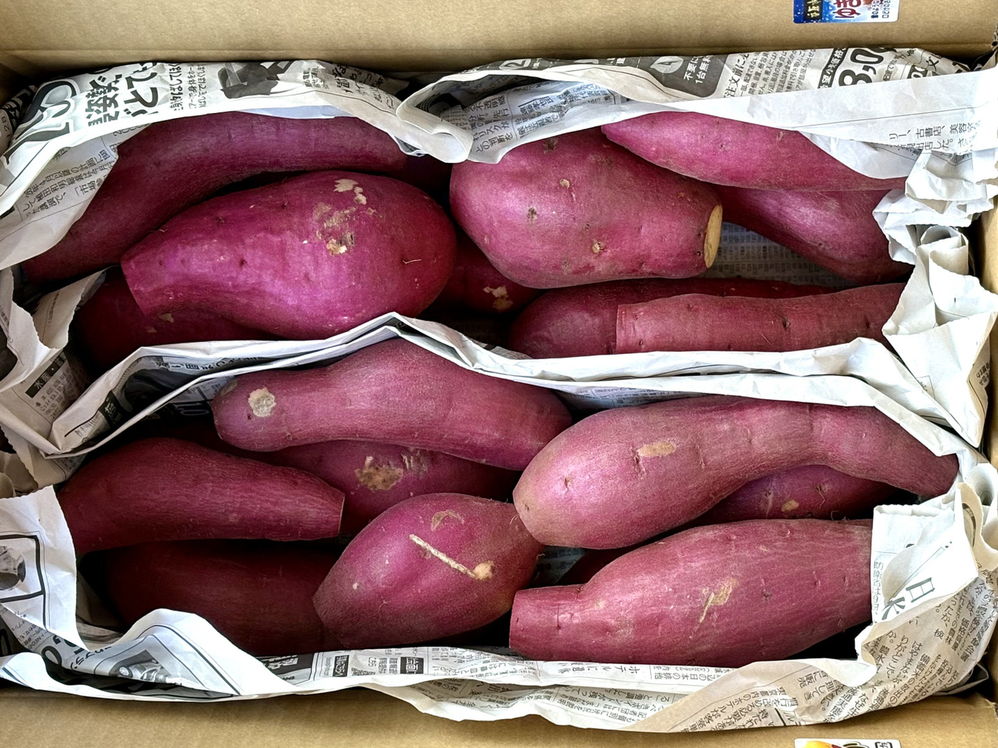 保管する際は、特に乾燥に気をつけ、一つずつ新聞紙で包み、適切な温度湿度で常温保管のうえ、お芋の様子を見ながらお使いください。ただし、水洗い済みの為、1週間〜数週間程を目安に保管し使い切る事を推奨いたします。