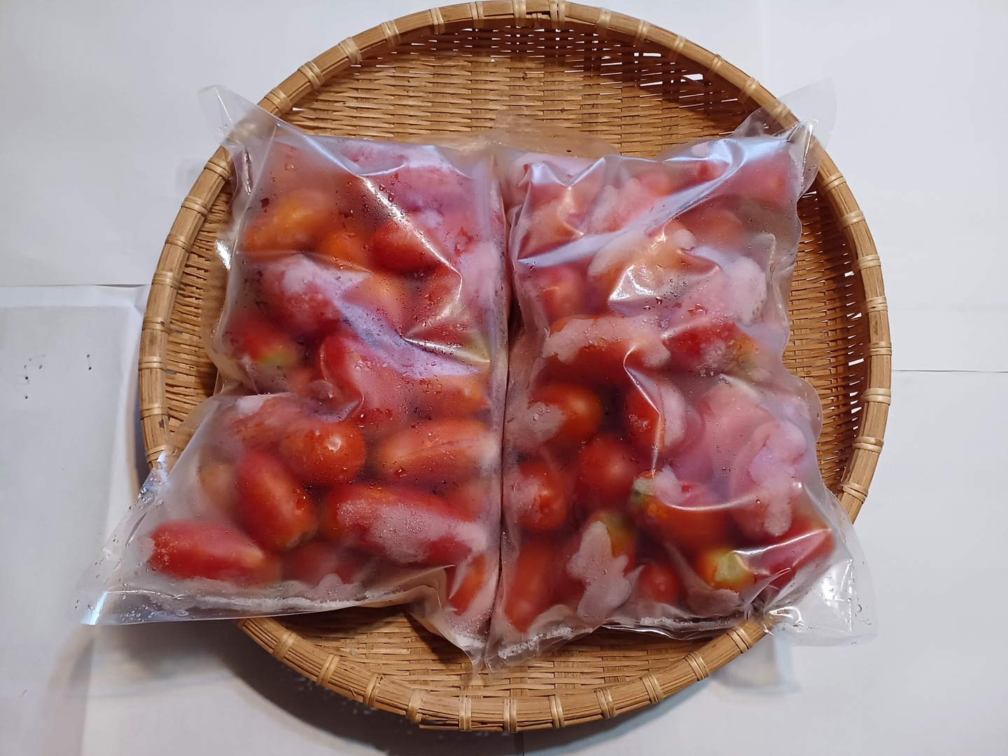 冷凍トマトですので、湯むき不要で流水で流すだけで皮がむけます😊