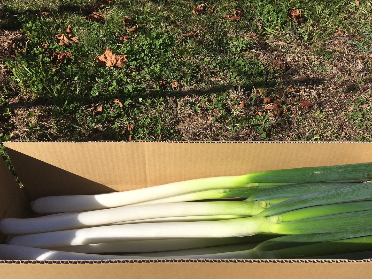 白ネギを箱に合わせてカットします。白ネギに傷や折れ、曲がれなどはありますが食味には問題ありません。切れ目に土が入ることもありますので洗ってご賞味ください。