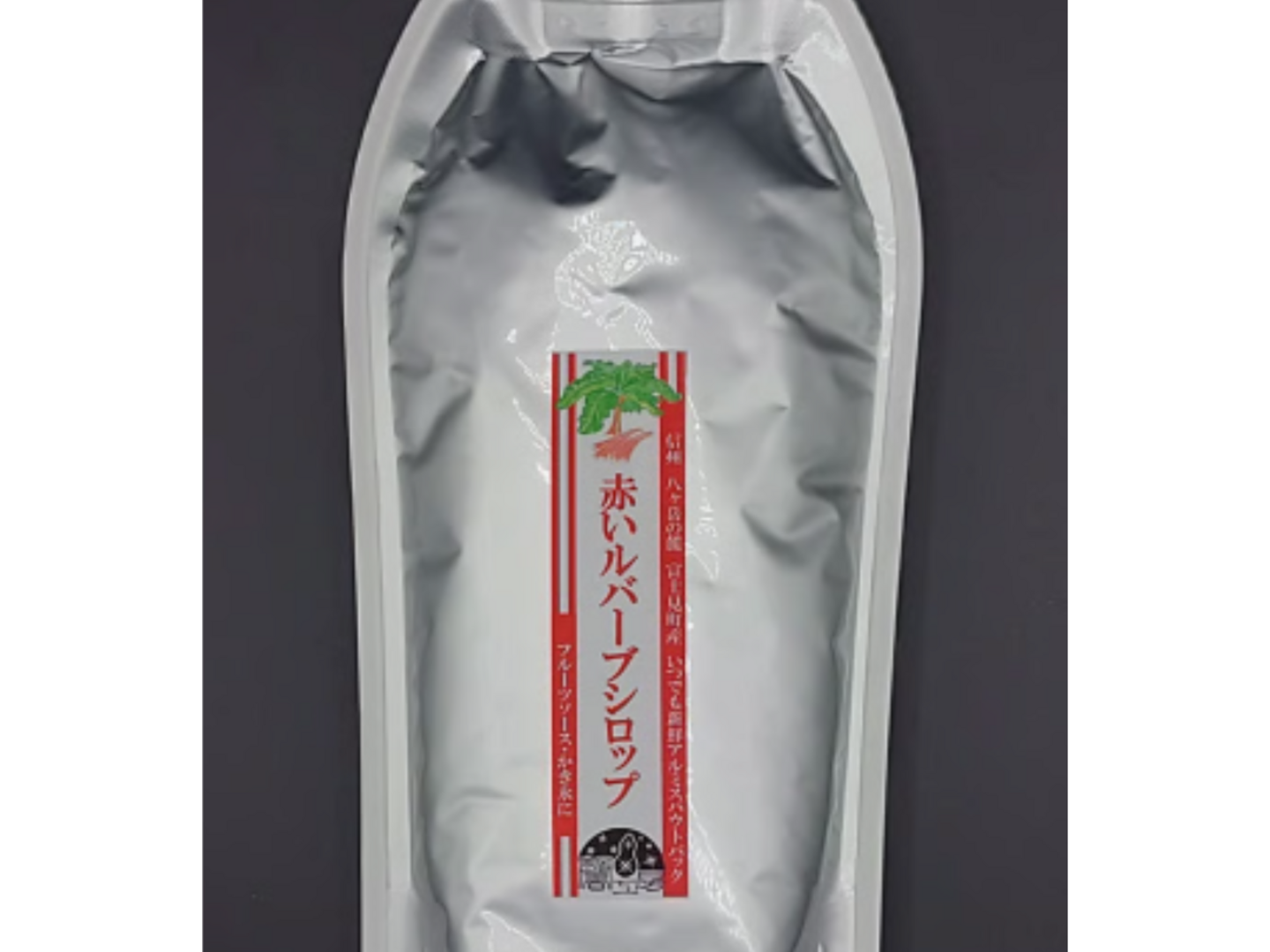 赤いルバーブの加工品は、光で赤色が抜けてしまうため、アルミスパウトパックを使用しました。光をシャットアウトし、鮮度を保ちます。