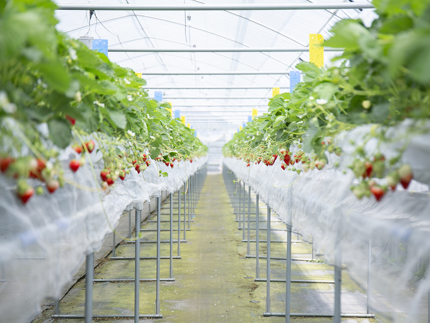 温暖な気候で、色づきが良く、真っ赤ないちごが多いです。