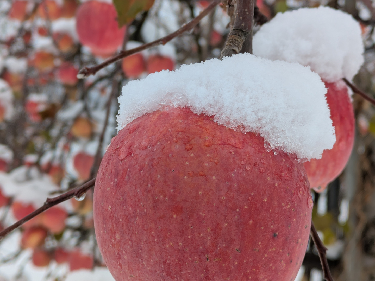 雪のない地域のりんごとは多少、味や食感が変わると思います。