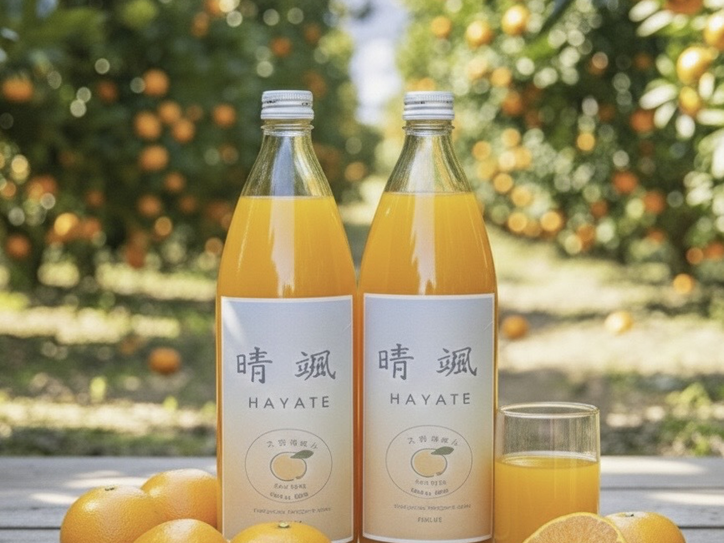 このジュースは酸味が効いた甘みのある天田みかんのみを利用しています。颯爽とした晴れた日のような心地良い味わいが特長であることから『晴颯(ハヤテ)』という名にしました。ぜひ一度ご賞味ください。