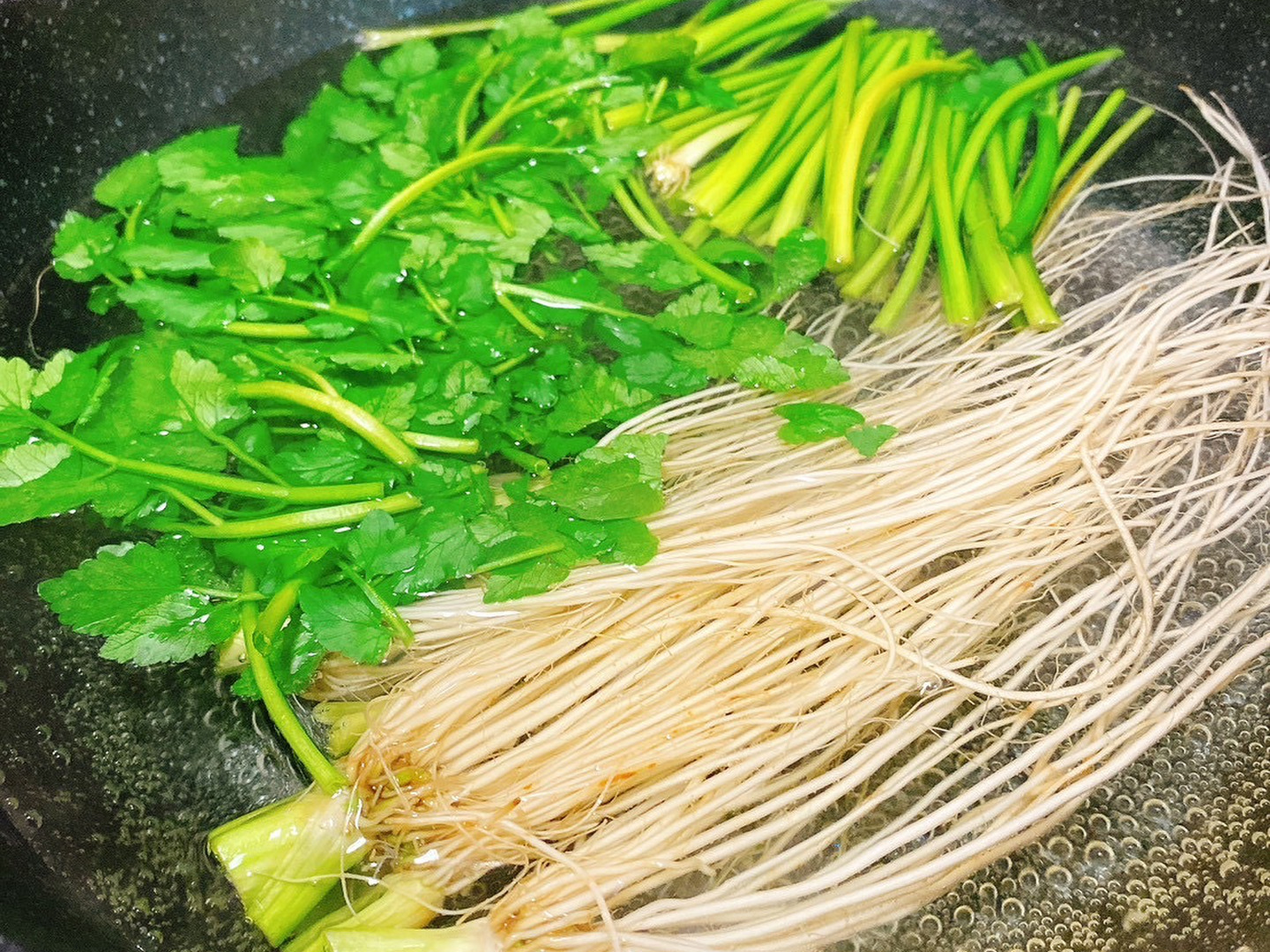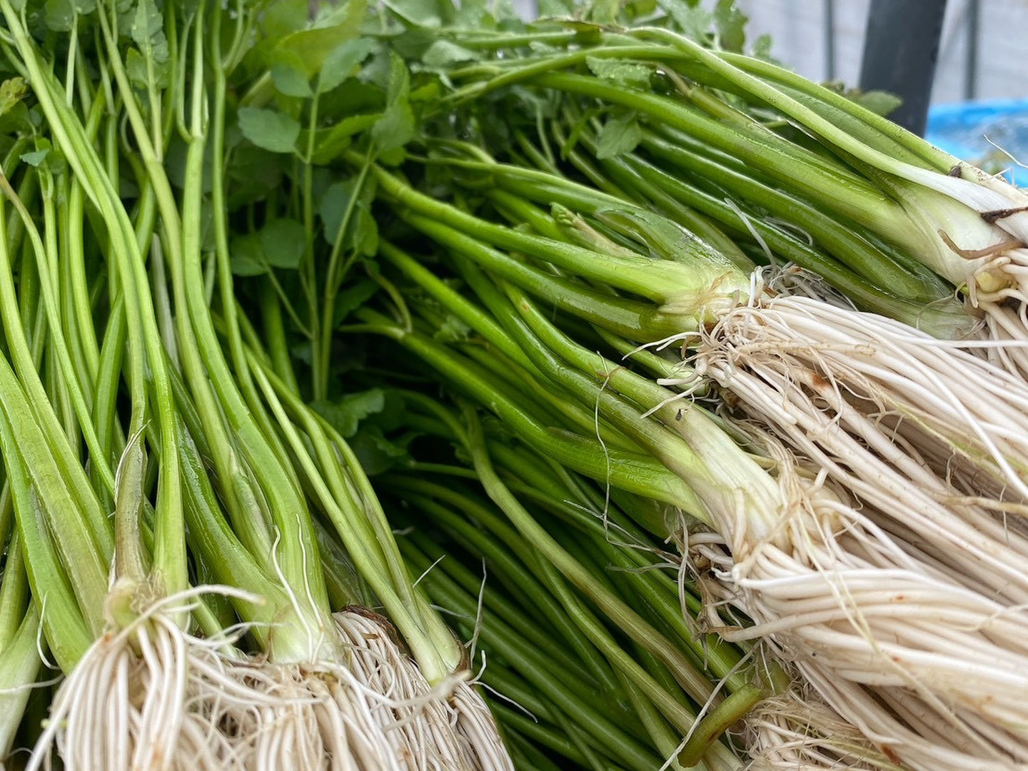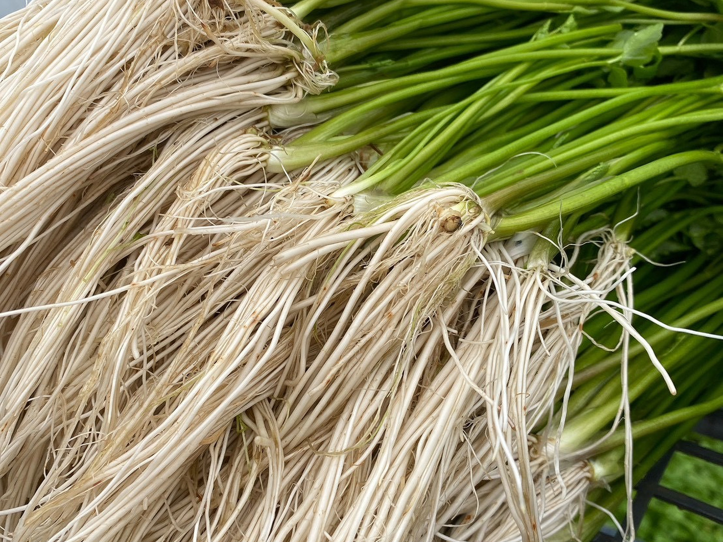 - 茎のシャキシャキと根のコリコリをお楽しみください