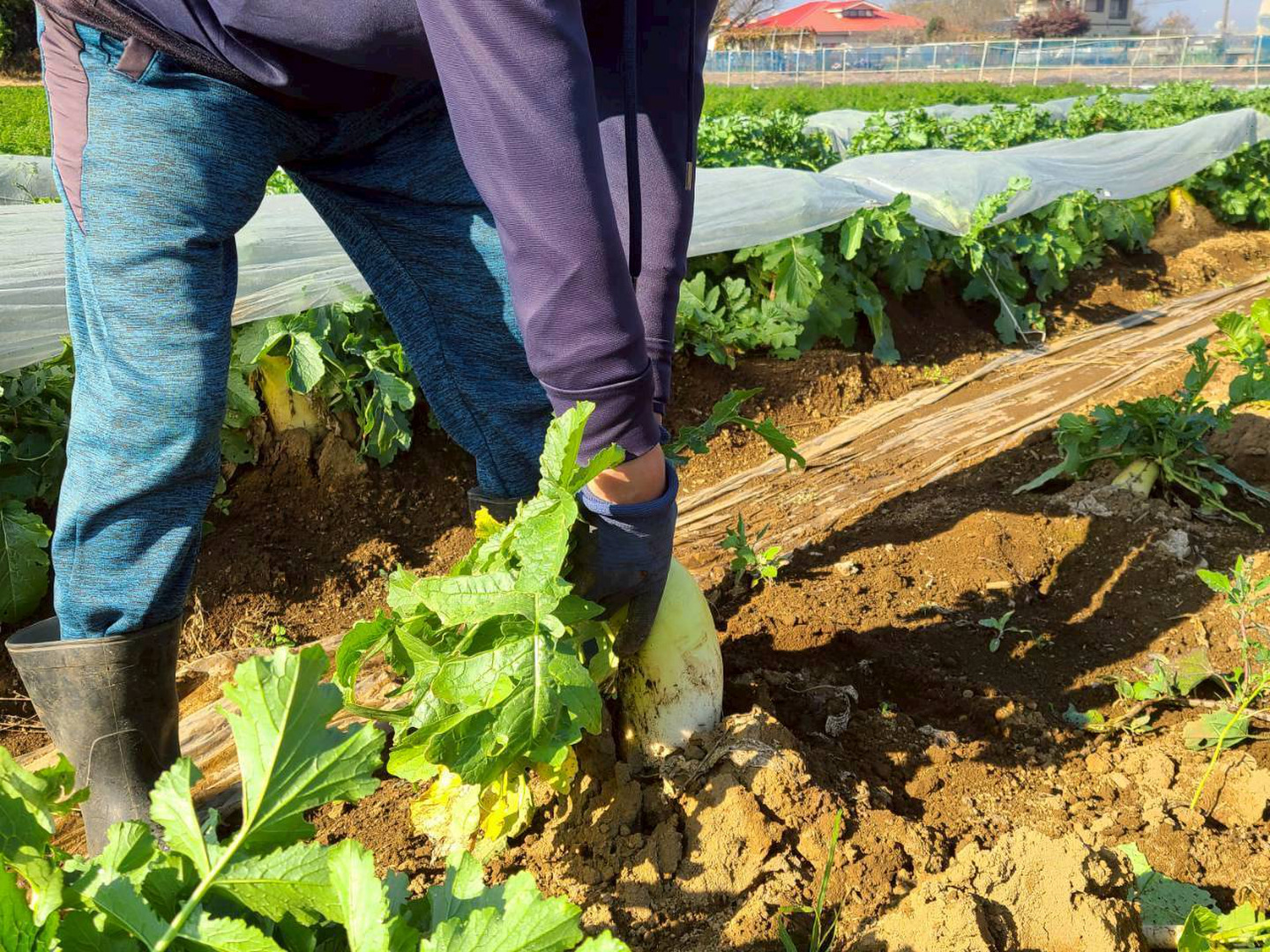 農薬・化学肥料・除草剤・防虫剤を一切使わず、自然の力と手間ひまをかけて育てた自然な味わいの大根です。