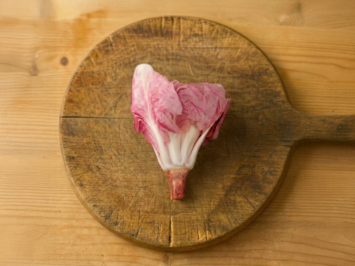 チコリア・ローザは、北イタリア・ヴェネト州のトレヴィーゾ地方周辺で親しまれてきた野菜です。冬に向かって徐々に冷え込む気候が、淡いピンク色とやさしい味わいを育ててきました。愛知県安城市の穏やかな冬の気候は、この野菜を過度に苦くせず、バランス良く仕上げるのに適しています。