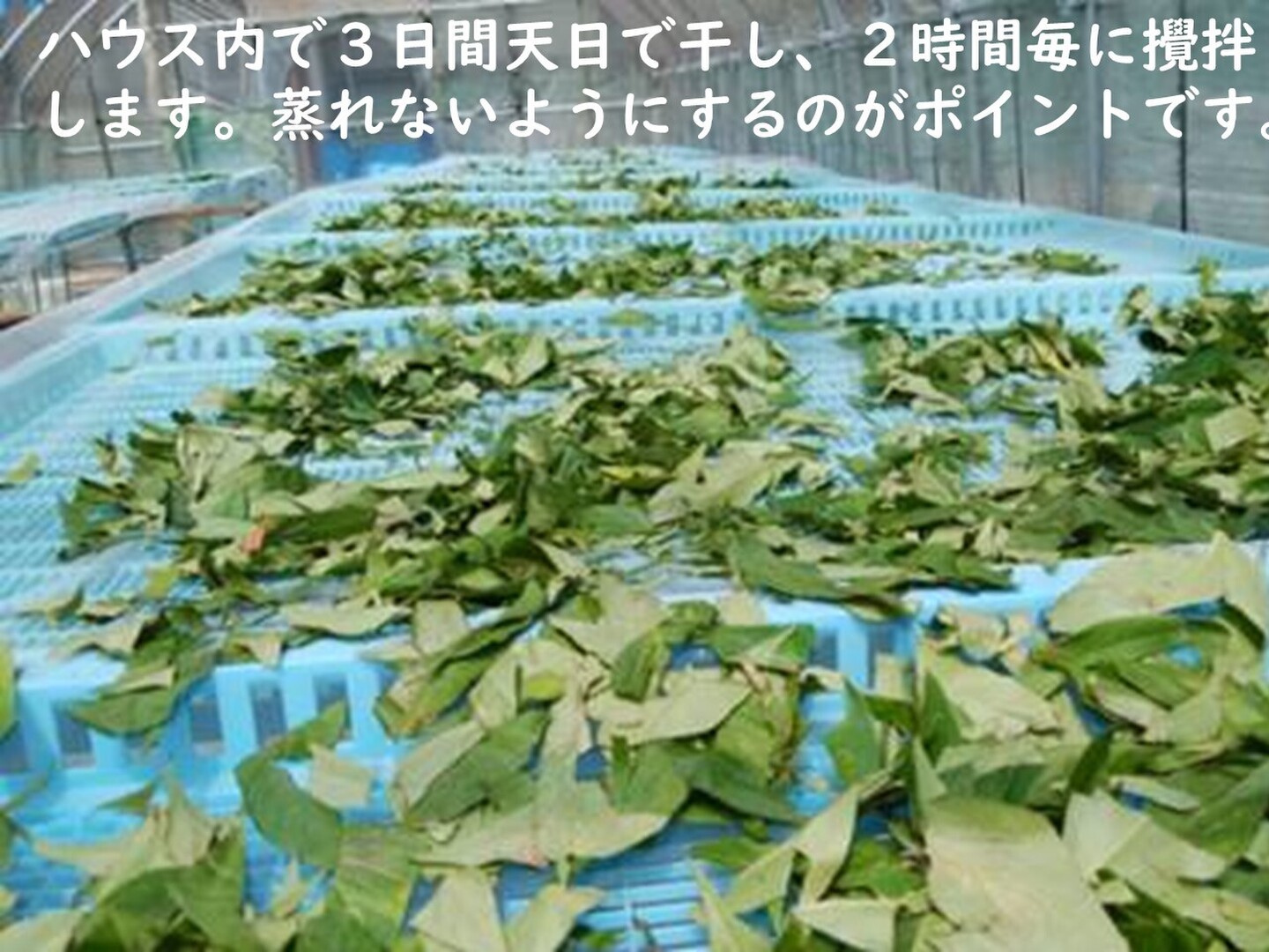 ハウス内で3日間天日で干し、2時間毎に攪拌します。