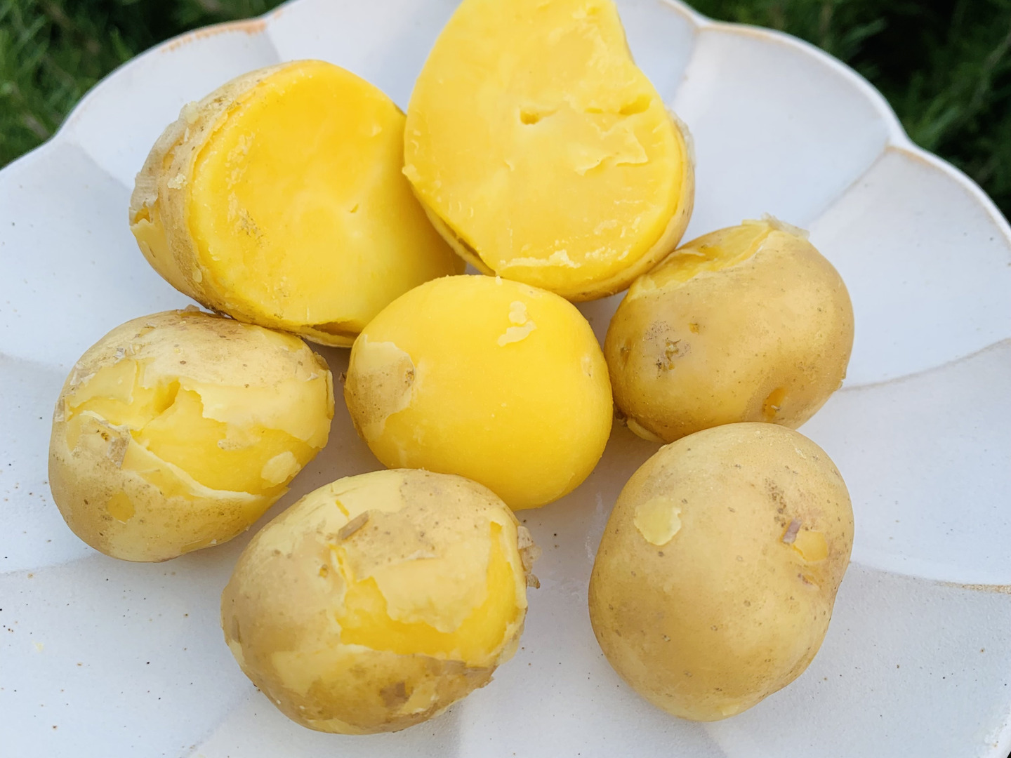 栗のような濃厚な甘みと黄金色の果肉、ホクホクした食感が特徴です。栽培が難しく希少で「幻のじゃがいも」とも呼ばれ、煮崩れしにくいため煮物やフライに適しており、低温貯蔵すると甘みが増します。