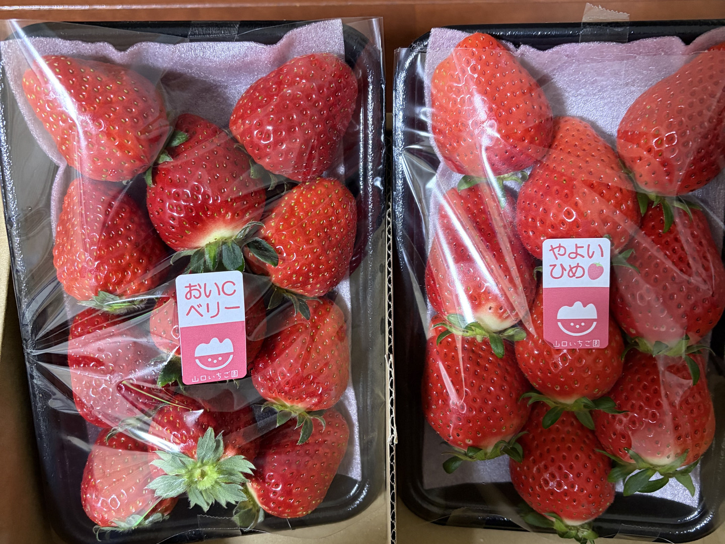 【おまかせ食べ比べ】いちごサイズおまかせ2パック 【よつぼし】【おいCベリー】【やよいひめ】から収穫次第、2品種をサイズは、おまかせでお届け‼︎ 朝採りをその日のうちに発送します(^^)