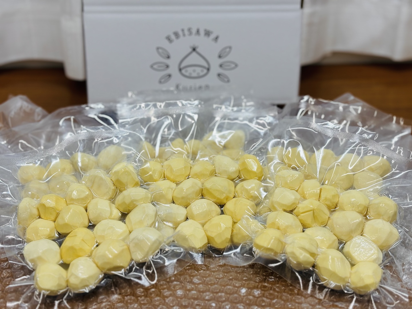 この栗は一つ一つ手作業でむき上げていますので一日の販売数には限りがあります。丁寧に剥いていますので渋皮も完全に取り除いてあります。栗本来の綺麗な色なので味と一緒に楽しんでもらえたら嬉しいです。
