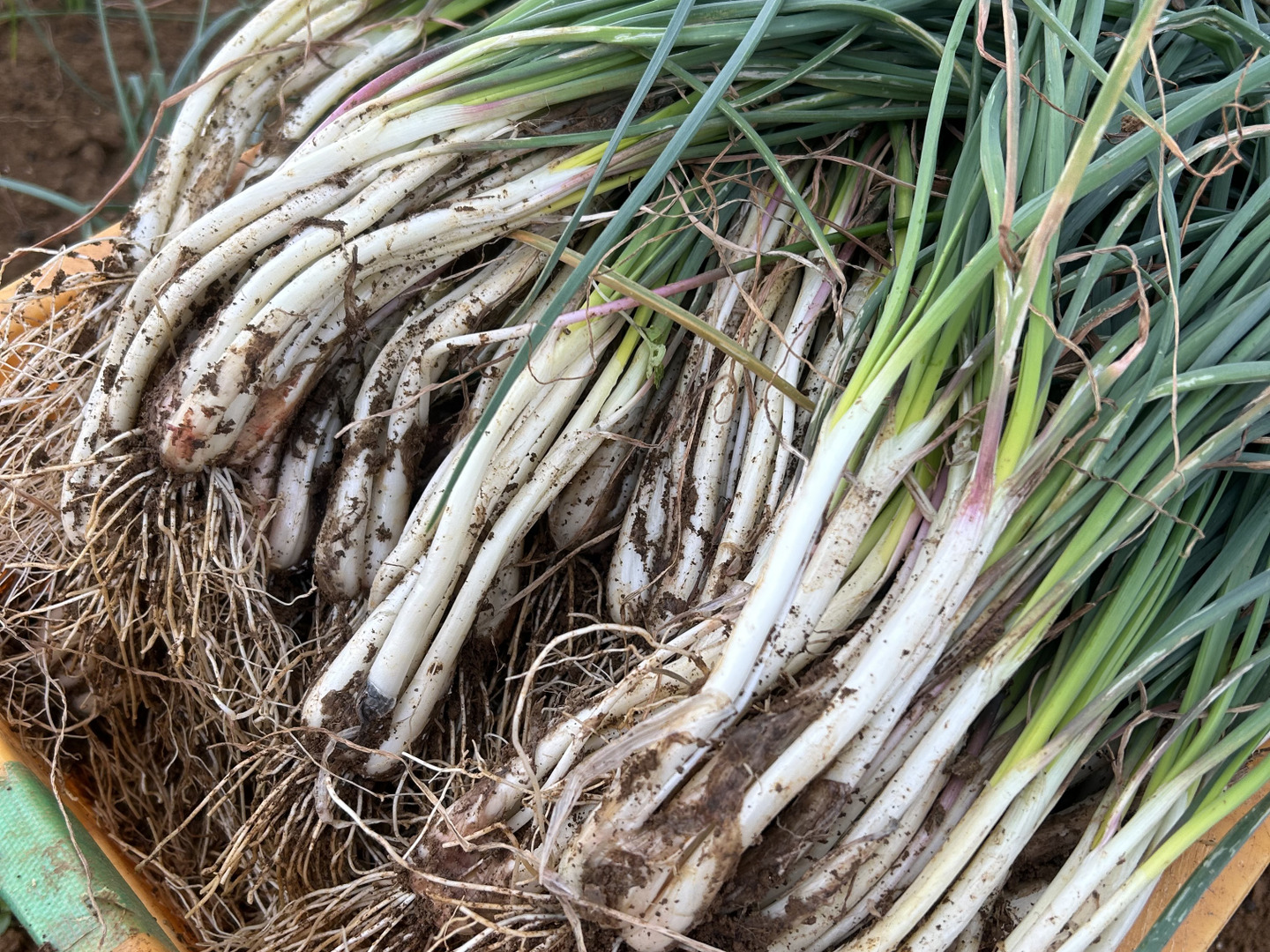 ・葉の部分は刻んでらっきょう味噌やチヂミなどにアレンジ!炒めていつもと違うらっきょう風味の逸品に!!