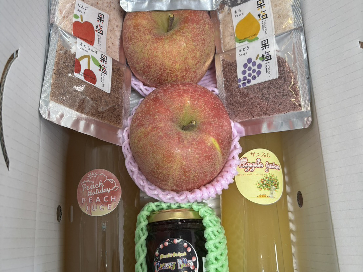 | 内容 | 福島県 まるせい果樹園のりんごとジュース、果塩の詰め合わせ 家庭用 自家用 贈答用 | ||||||