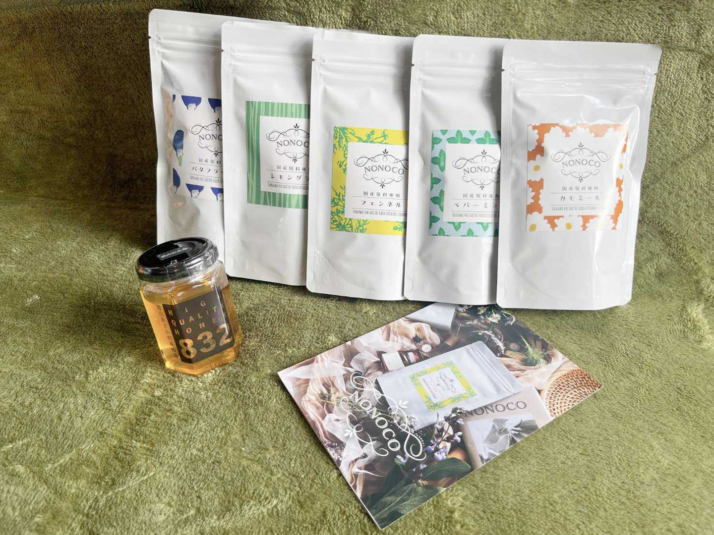国産ハーブのシングルティーと国産〈非加熱・無添加〉はちみつで自分へのご褒美を!福島の生産者2名の限定商品です。