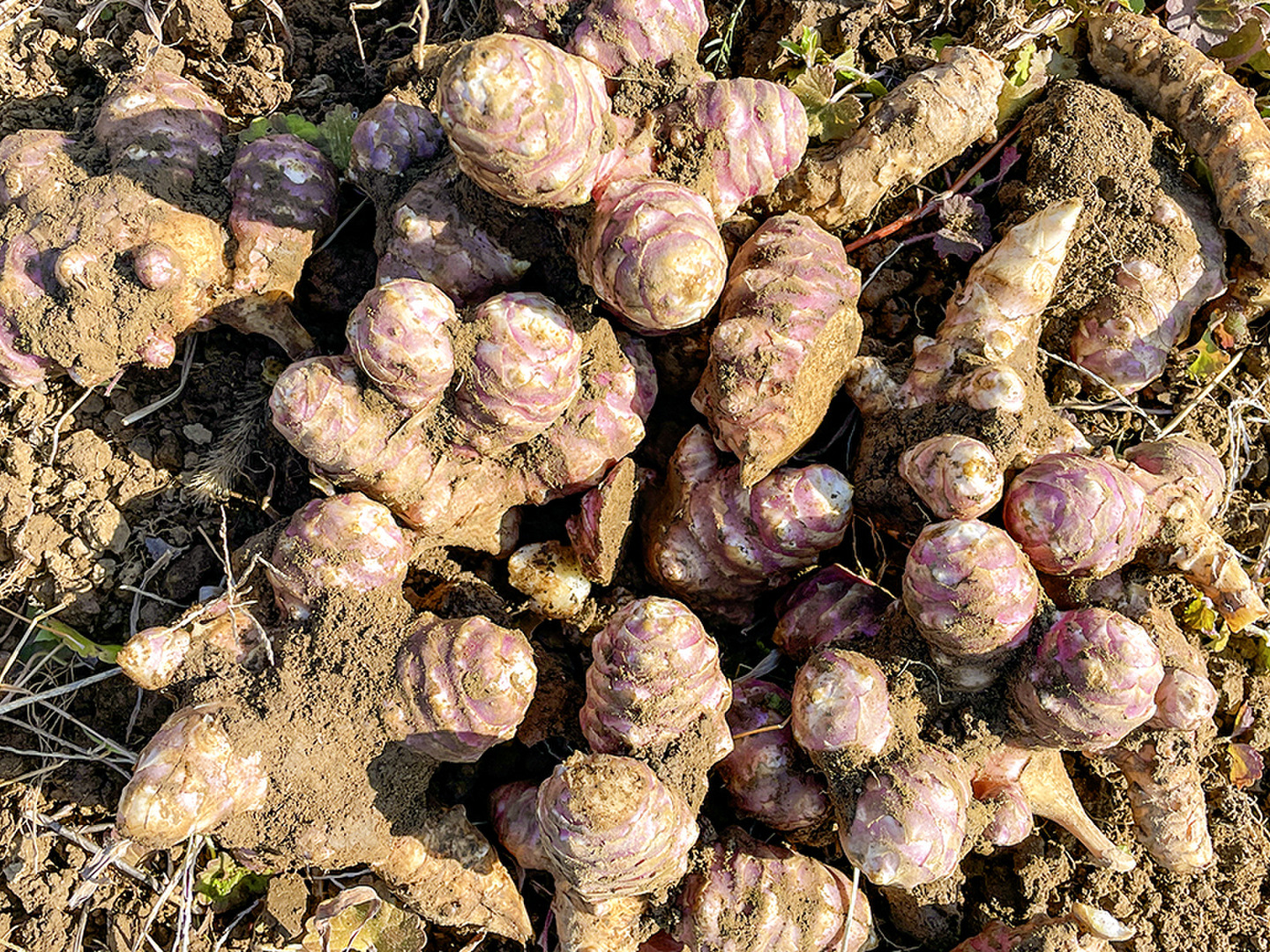 菊芋を一個ずつ手作業で丁寧に掘り起こし、土付きでお届けします。長期保存したい方にオススメです。お客様のもとに早くお届けできるのは産直サイトならでは。ぜひ新鮮な菊芋の美味しさを味わってみてください♪