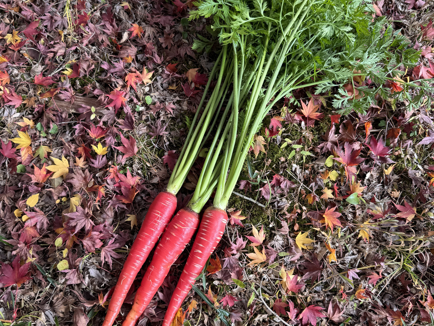 農薬を使わず有機肥料で栽培しました。正月料理(なます・煮しめ・雑煮)に欠かせない京都の伝統野菜で、色味と甘みの濃さが特長です。