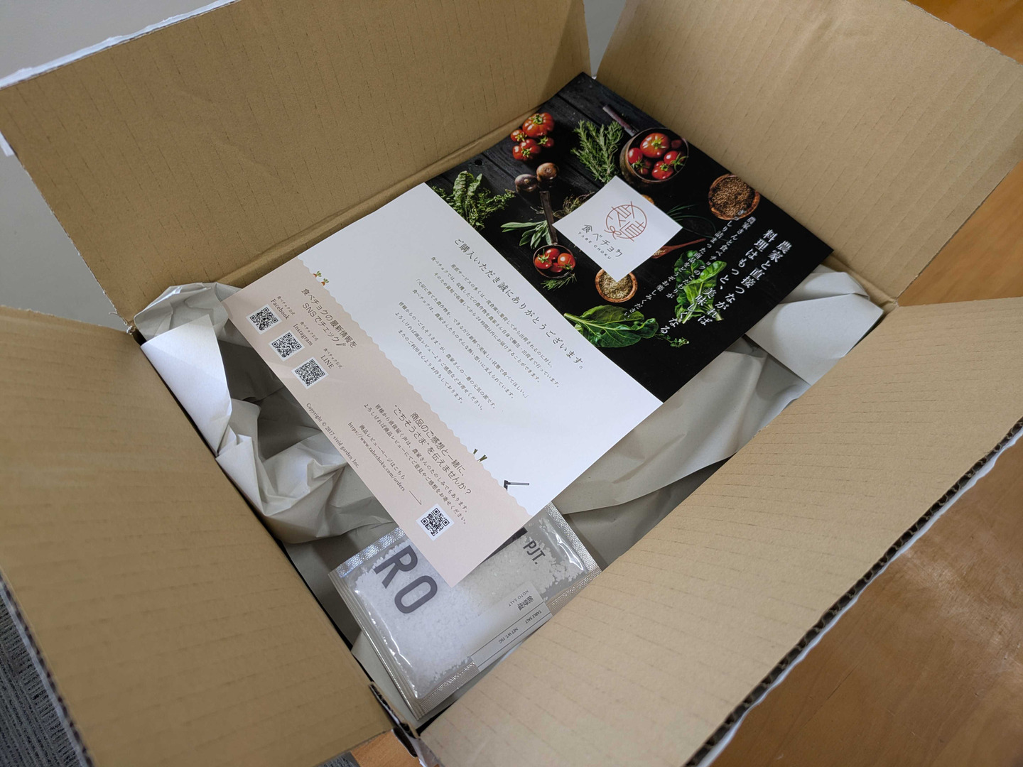また、野菜にぴったりの調味料もお試しサイズでお付けします。現在はおすすめの「塩」をお付けします🌊