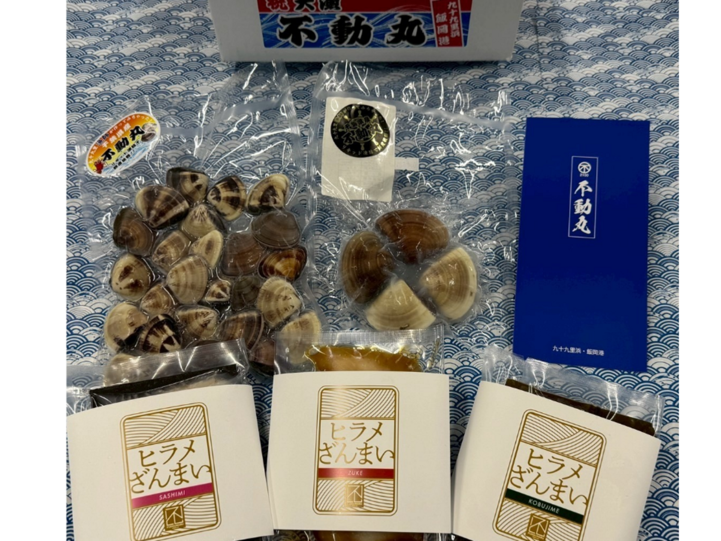| 内容 | 凍眠凍結蛤小粒蛤(500g)、ヒラメざんまい1セット(約190g)、凍眠凍結幸運のはまぐり(200g) | ||||||