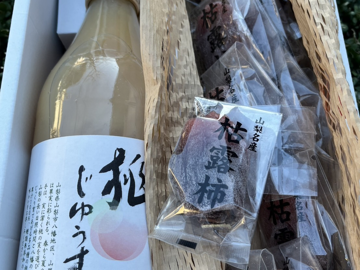 【福袋】桃ジュース1本+ころ柿(干し柿)Sサイズ10個+ドライフルーツMIX1袋