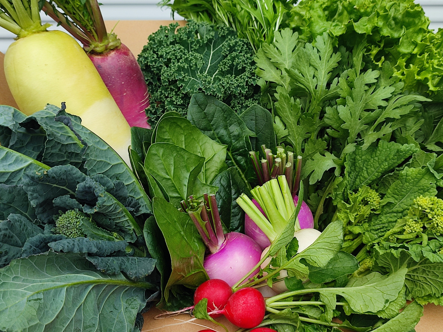 商品について あわせ買い対象 同生産者の別の「あわせ買い対象」商品と一緒にご注文いただくと、送料をまとめてお届けできる場合があります。 生産者からのお知らせ 配送不可エリアのお知らせ沖縄・離島への配送については現在対応不可とさせていただいております。恐れ入りますが、予めご了承ください。 もっと見る 内容 季節のお野菜 12品目 / スタッフがおすすめ旬野菜をセレクト 発送 ヤマト運輸 送料 ¥ クール便(冷蔵) + ¥ 330 数量1点ごとに送料が発生します。 種別 野菜セット 産地 千葉県 農薬化学肥料不使用 野菜セット 動物性堆肥不使用 千葉県x野菜セット 商品説明 食べチョクアワード2025 やさい部門 3位入賞を記念して、期間限定で旬の野菜12品目の特別セットを販売いたします。ファミリーや大量消費される方におすすめです!<お届け予定野菜>小松菜、ほうれん草、水菜、わさび菜、ルッコラ、壬生菜、菜花、アレッタ、こかぶ、あやめ雪かぶ、大根、むらさき大根、あやめっ娘大根、春菊、サラダケール、ラディッシュ、リーフレタス、芽キャベツ、フェンネル、スナップエンドウ、キャベツ、白菜、など ※こちらの野菜リストはあくまで一例です。ここに掲載したもの以外が入ることもございます。\オンザファームとは?/南房総の温暖な気候を利用し、化学農薬、化学肥料を使わずに、年間を通し約100種類の作物を栽培しております。鮮度も味を決める基準のひとつと考えて、なるべくその日に収穫したものを、すぐに梱包・発送しております。肥料は、米ぬか、菜種油かす、ぼかし肥、もみ殻堆肥、緑肥など植物性の有機肥料を使用しています。/オンザファームのここがこだわり!\(1)おいしさを決める【品種・旬・鮮度】オンザファームでは、おいしさに影響を与える3大要素を、【品種・旬・鮮度】と考えています。(2)1束の野菜に心をこめるスタッフ私たちは「野菜を作っている」のではありません。『野菜のある生活』を作っています。(3)太平洋からの薫風、南房総の温暖な気候透き通る海、緑の山、大きな青空、そして澄んだ空気に囲まれながら、オンザファームの野菜はすくすく成長していきます。!!! ご購入の前に必ずお読みください !!!- - - - - - - - - -【画像について】野菜は季節やタイミングにより変更になります。野菜のボリュームをお伝えするためのイメージとなります。【最短配送可能日について】ご注文日から 『3日後以降』 でご希望の日時指定をお願いしております。システム上は 『2日後』 から指定できますが、3日後以降でないとお届けできませんので予めご了承ください。【配送不可エリアについて】沖縄・離島への配送については現在対応不可とさせていただいております。予めご了承ください。- - - - - - - - - - もっと見る この商品のことをお友達にもシェアしませんか ポスト シェア