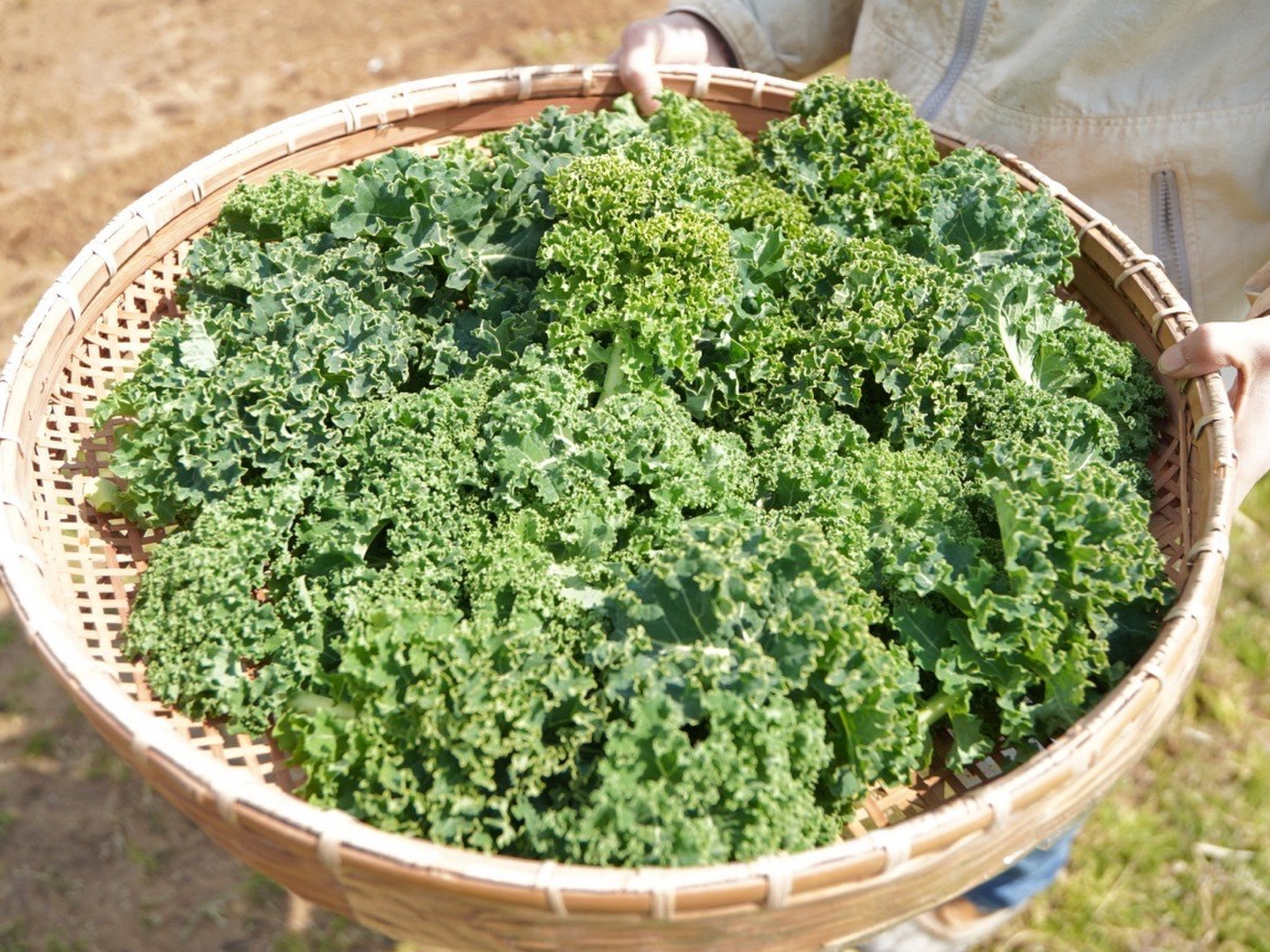 えぐみが少なく、生でもおいしい私たち自慢のケールだからこそ、ドレッシングをかけずに素材そのものの味もぜひお愉しみください♪