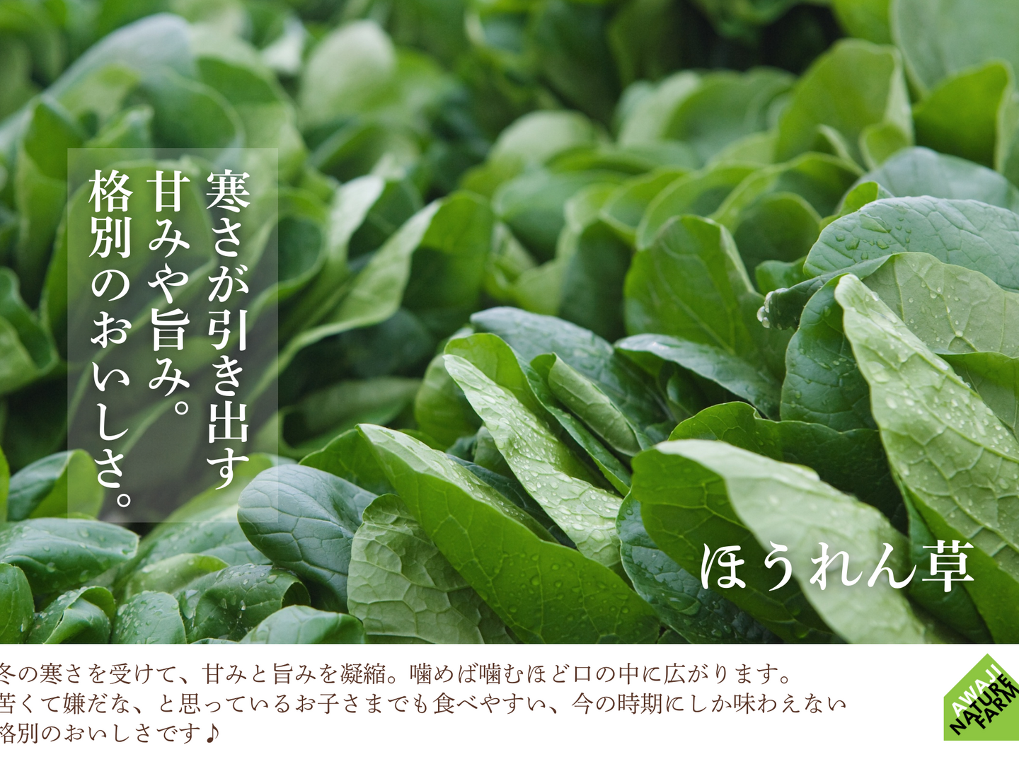 ・・・いつも食べているほうれん草とは一味違う、格別のおいしさ。冬の寒さを受けて、甘みやうま味が濃くなっています。