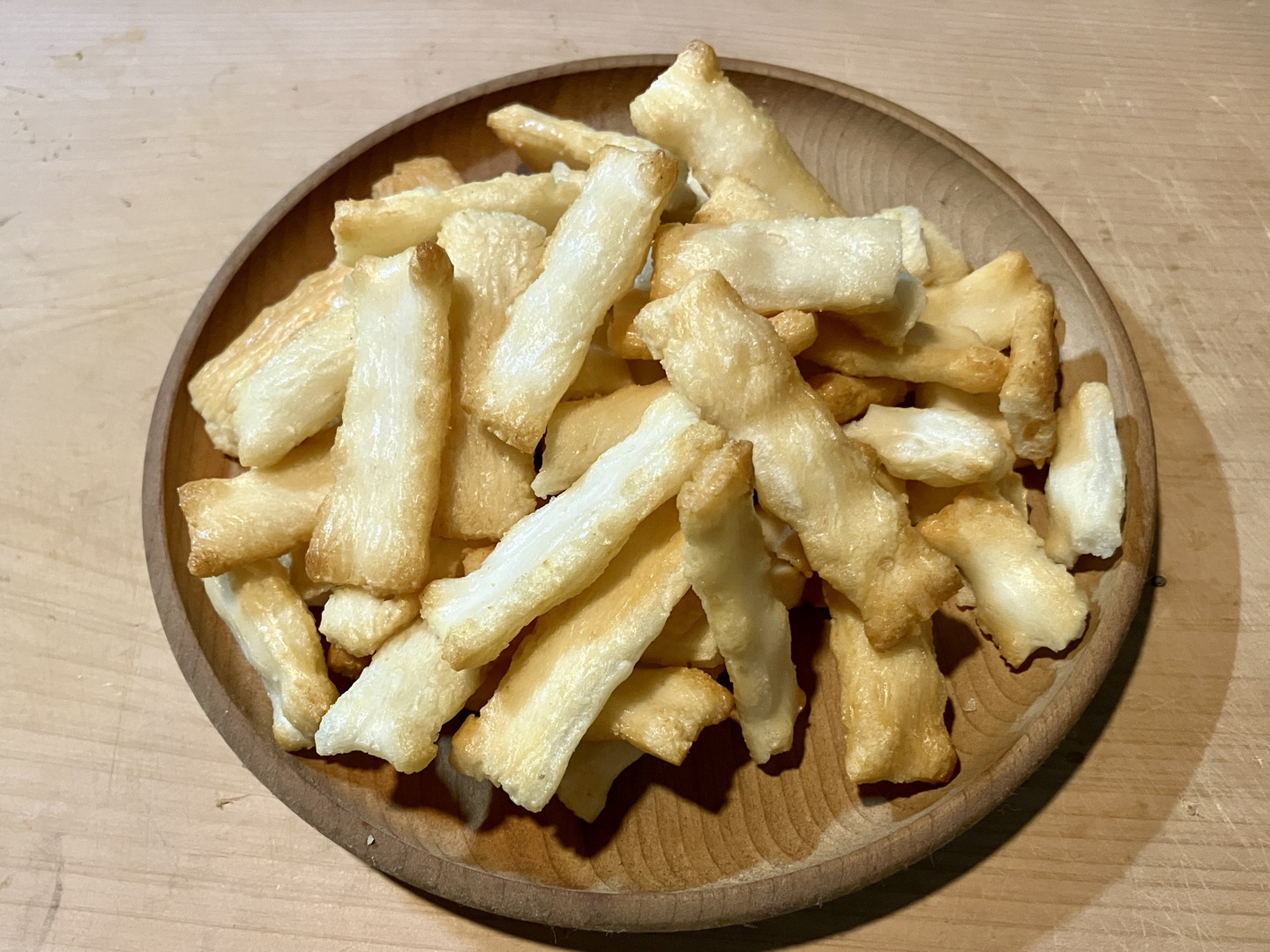 お餅を揚げずにじっくり焼いたあられのため、お餅の味が楽しめるかなり満足度の高いあられに仕上がりました(原料の米油は、食塩をあられにまとうために使用しています)