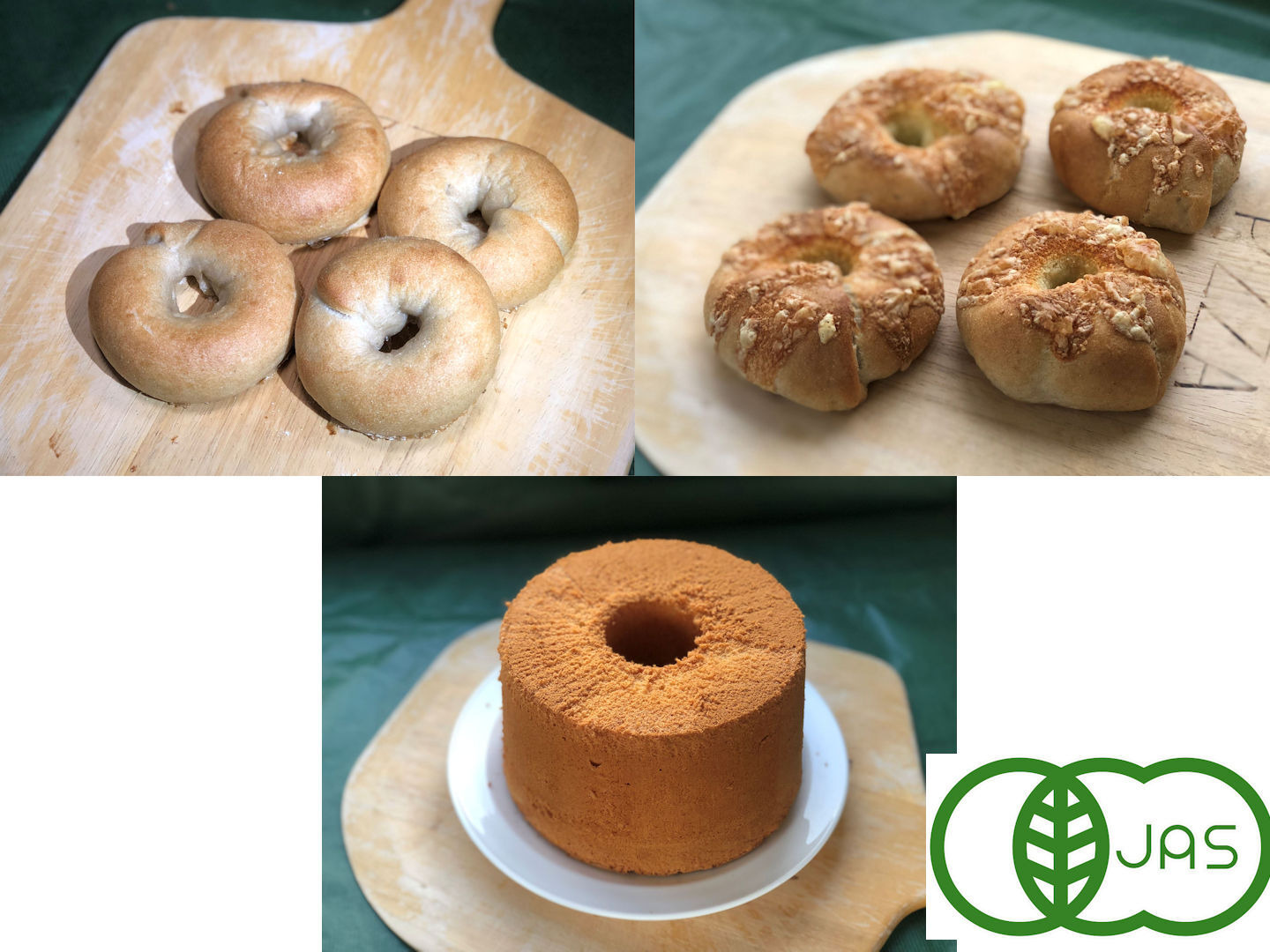全部有機!【ゲン担ぎ福袋】未来を見通す穴空きパン&Sweets:麦の栽培から一貫生産 自然栽培有機小麦のみ使用した有機ベーグル+チーズベーグル+シフォンケーキ Plain