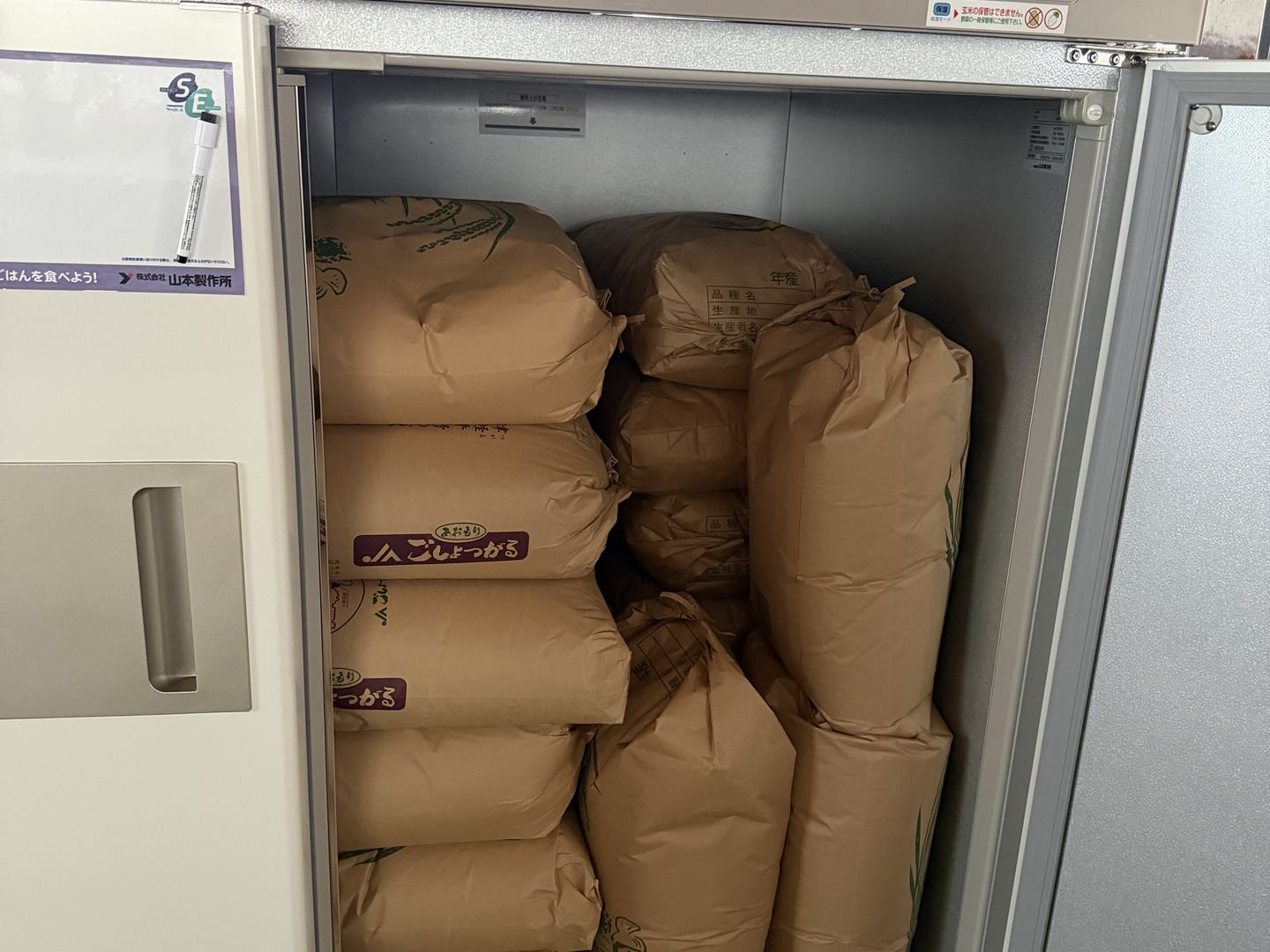 収穫して籾摺り後に袋詰めして玄米専用冷蔵庫で保管しておりますのでいつでも新鮮な状態の玄米をお届けいたします