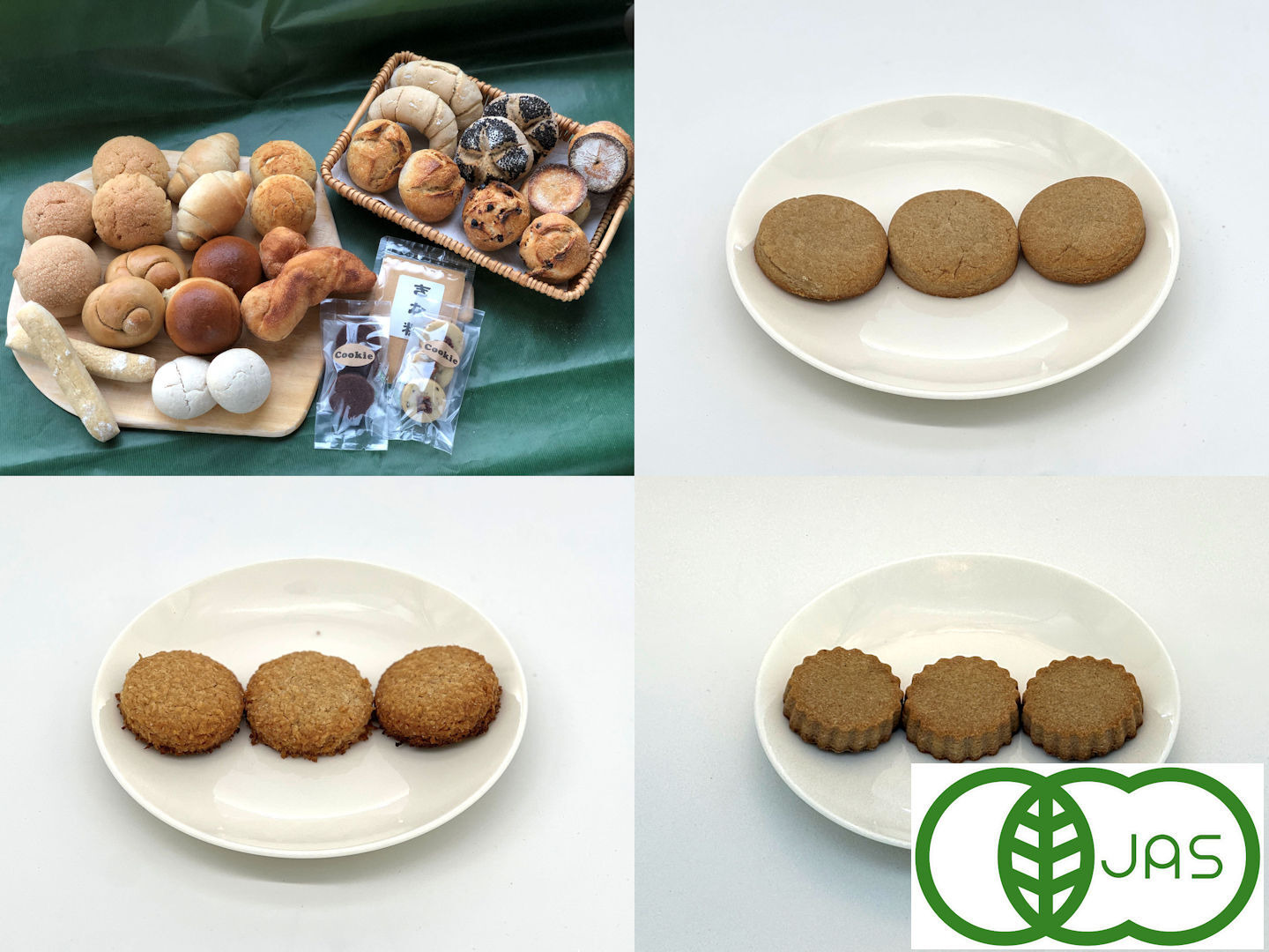 内容 有機JAS認証のバラエティーパンセット(有機ドーナツ、有機Cookie付き)です。