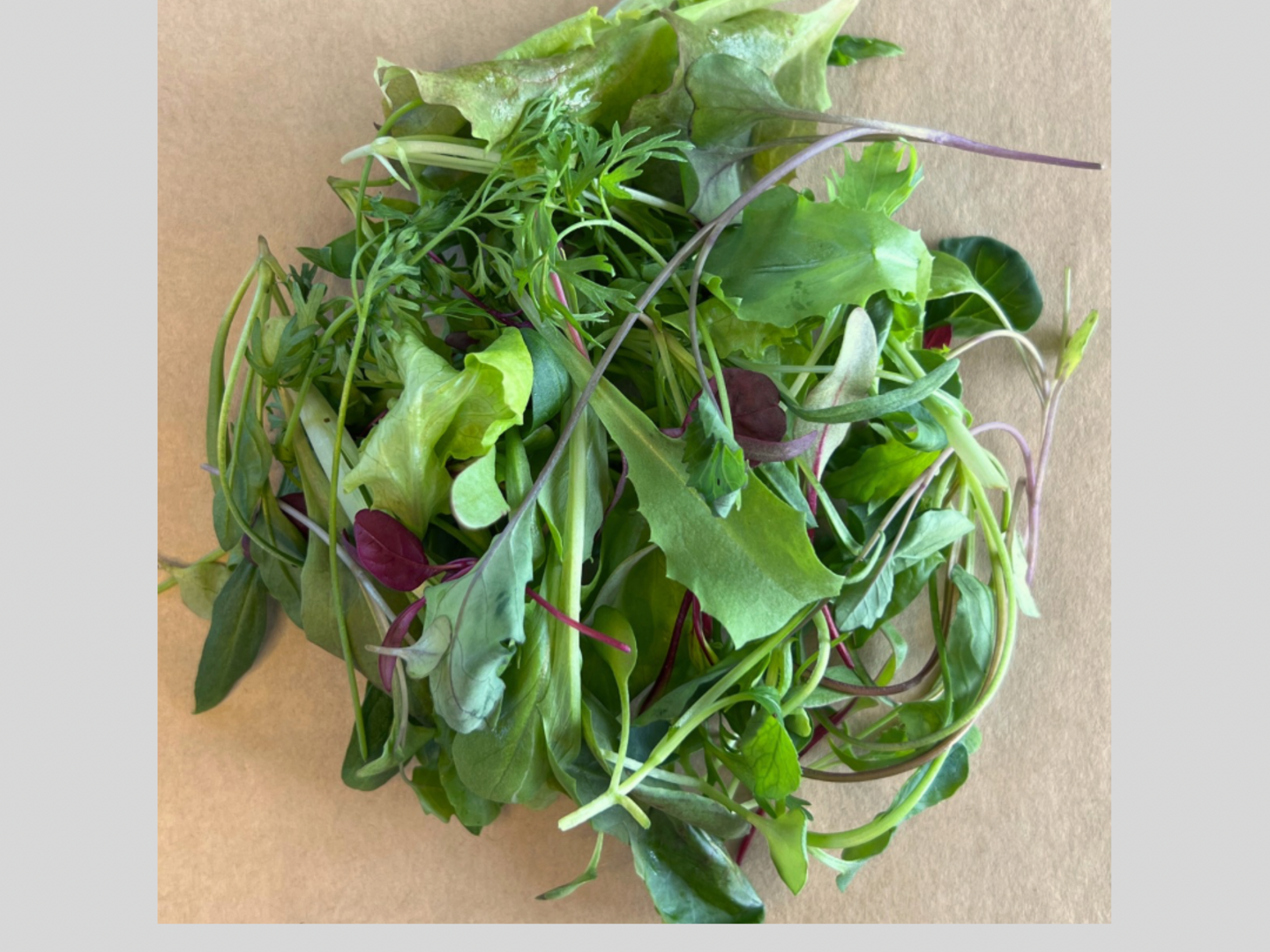 一般的なベビーリーフのように“決まった組み合わせ”ではなく、旬と状態に合わせて手摘みによって出来る季節のブレンド。